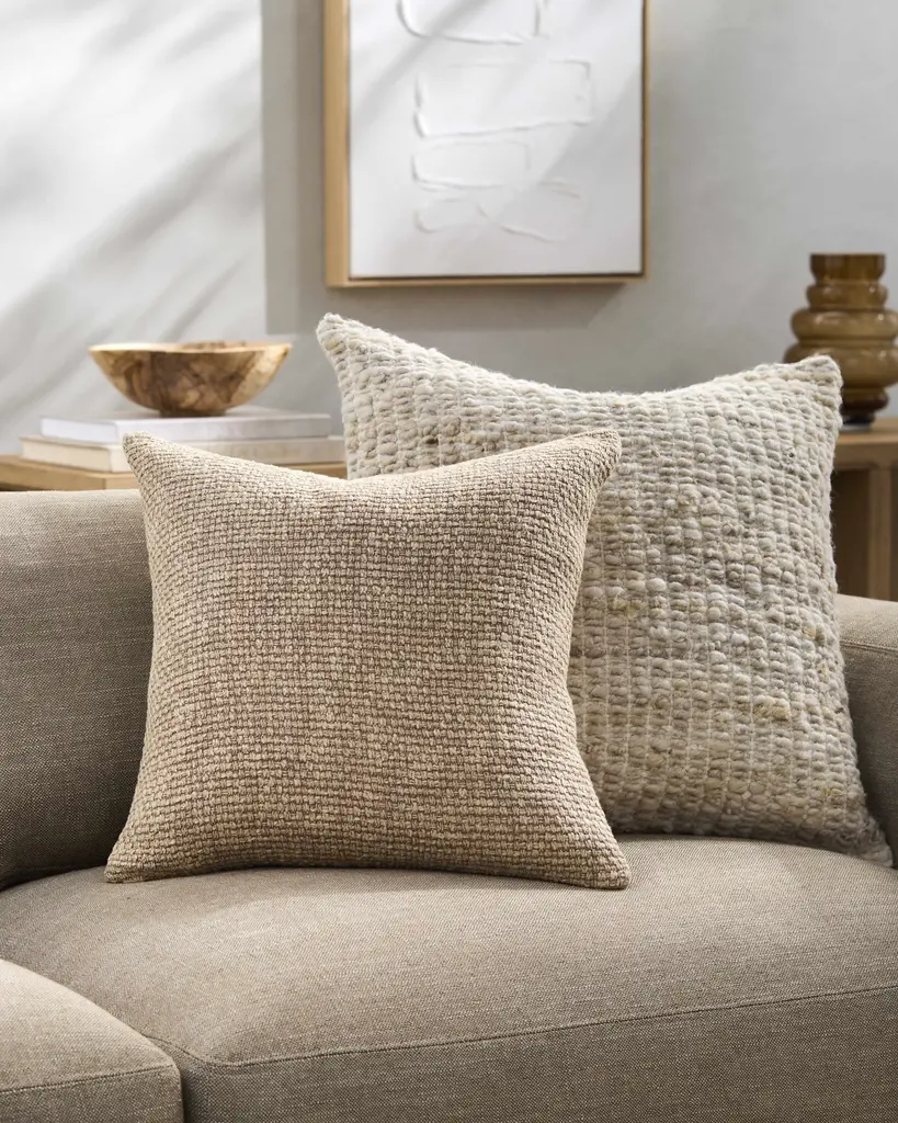 Funa Beige Square Throw Pillow - 18" Square Pillow Cover With Down Insert