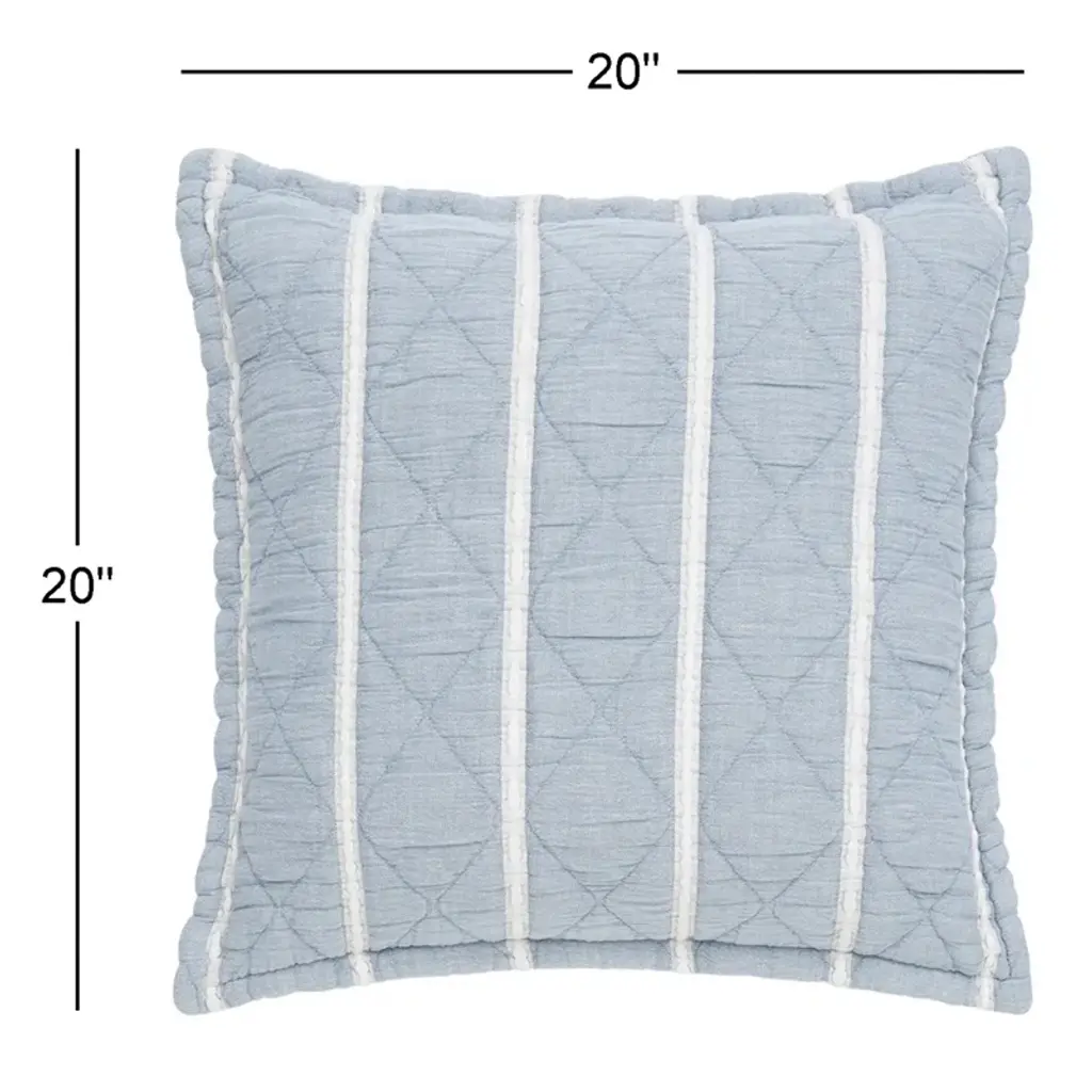 Our Garrow Collection includes a 20 Inch Pillow Cover that features a lofty quilted design that takes cozy to another level. The product is hand-crafted in Portugal, of 100% Cotton and is produced using an Eco-friendly dying process that uses 70% less water consumption and is OEKOTEX certified. The cotton corded stripe running through the quilt texture adds a sophisticated element of detail. Available in an array of colors that coordinate effortlessly with any decor. Pair this piece with the Garrow collection and make your space complete.