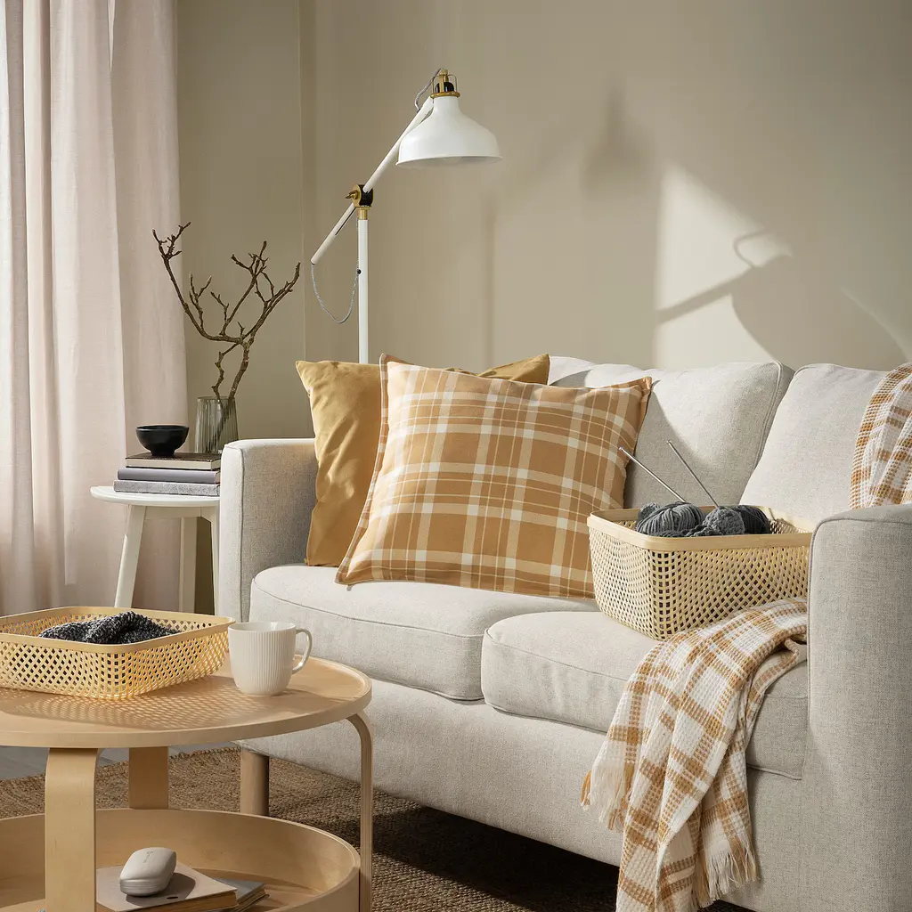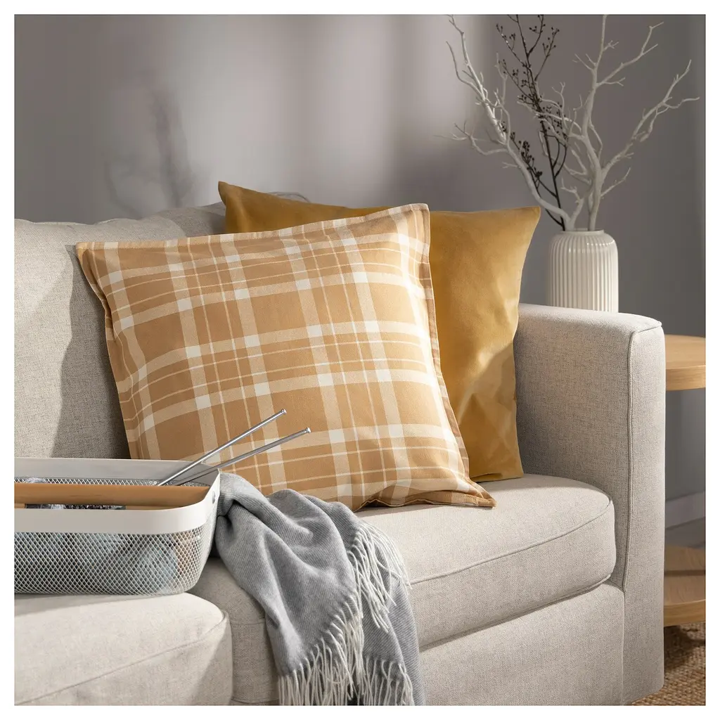 GEMSROT Cushion cover - dark beige/check 20x20 ". The hidden zipper makes the cover easy to remove. Cotton is a durable natural material that can be machine washed and ironed. Fits inner cushions 19⅝x19⅝".