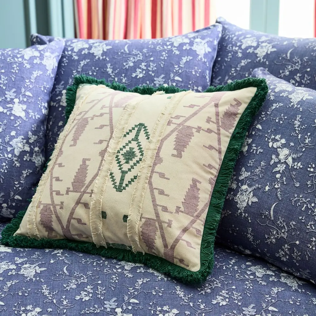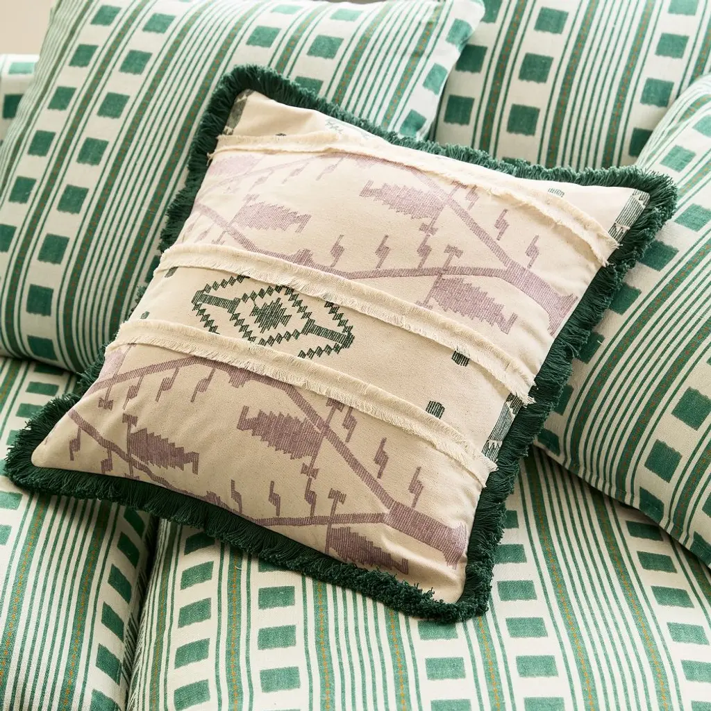 Geometric Embroidery Fringe Trimmed Pillow Cover