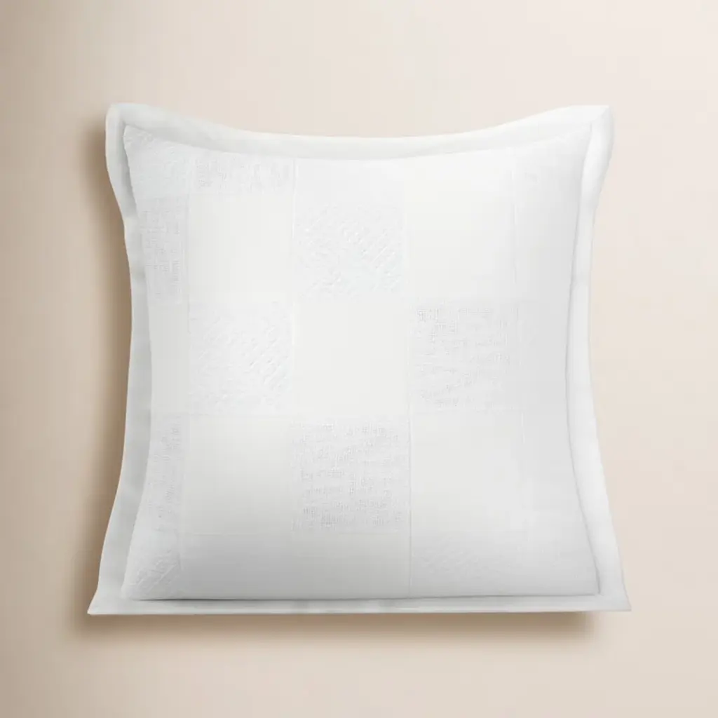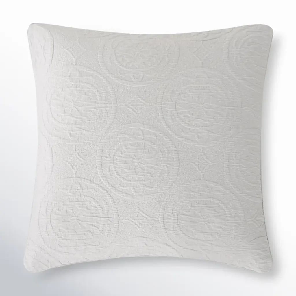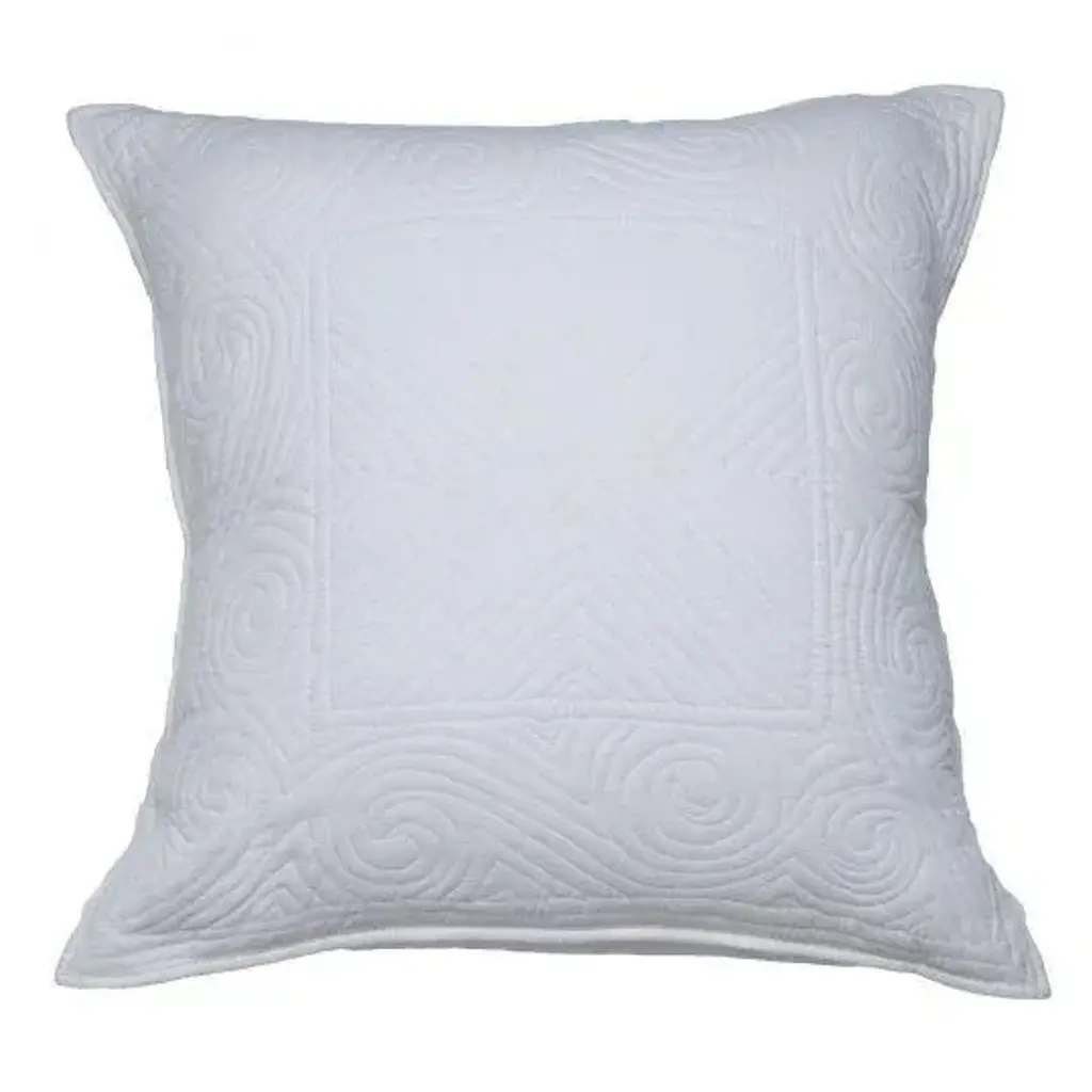 Graceful swirls and whorls contrast with hatched diagonal lines to create this Geometric design that instantly draws the eyes. For plush textured comfort, look no further than our quilted pillow covers. Made from the softest of cottons with 100% cotton filling, these pillow covers are one of the few Marigold Living products where skilled artisans use machinery to create an intricate decorative stitch. In fresh snowy white, these pillows look cozy and inviting atop your bedspread or scattered around your couches and chairs. Materials: Pillow covers are made of cotton voile with 100% cotton fill. Product Features: Finished with an envelope closure. Insert not included. Crafts: Decorative machine stitching done by artisan. DIMENSIONS Pillow Cover: 20" x 20" square CARE & MAINTENANCE Protect from direct sunlight when using. Hand or machine wash separately in cold water in a short, low-spin, gentle cycle. Use a mild detergent without any bleach or fabric softeners. Do not soak or wring the fabrics. Scrub gently if needed. Tumble dry on low heat or air dry in the shade. Iron at medium setting. Test stain remover on a small area before applying.