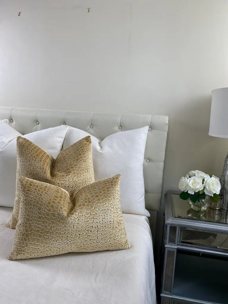Gold & Cream Velvet Throw Pillow Cover With Feather Down Insert
