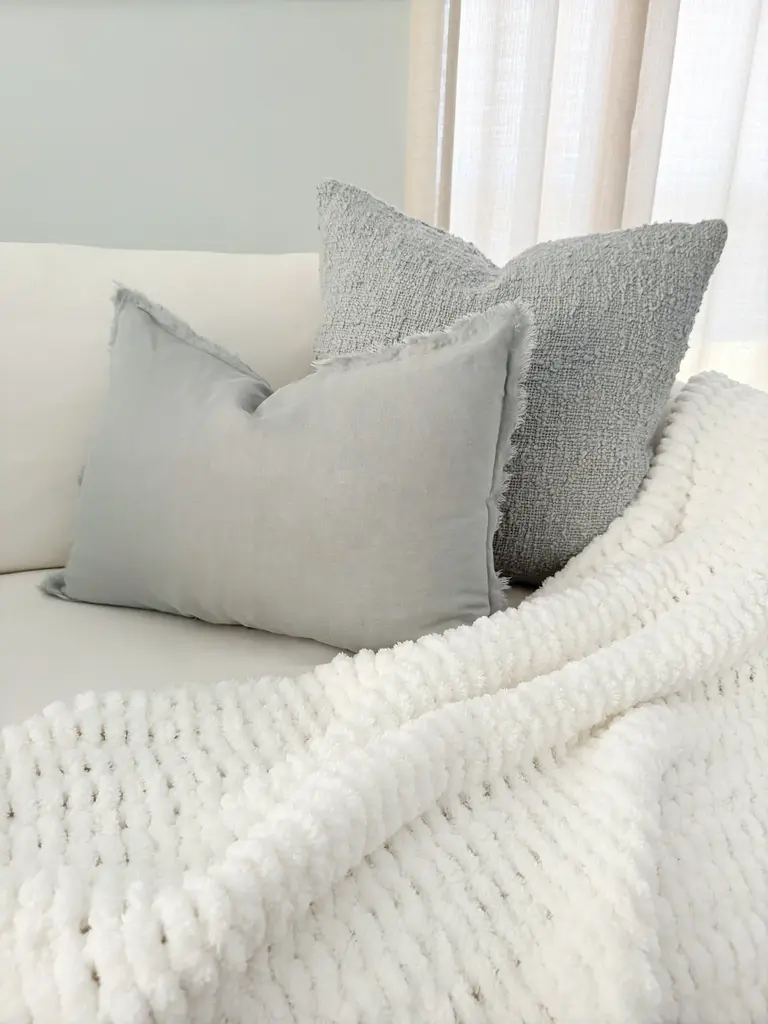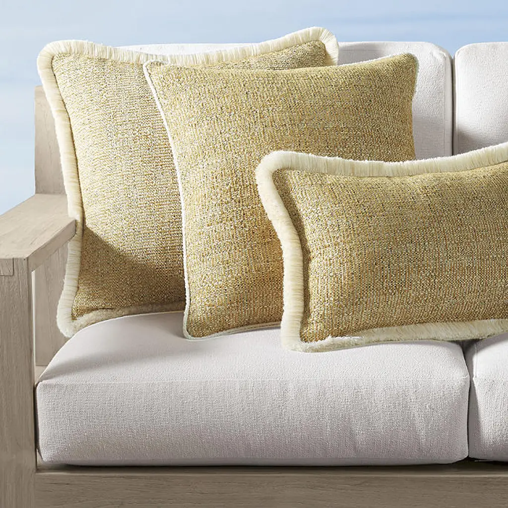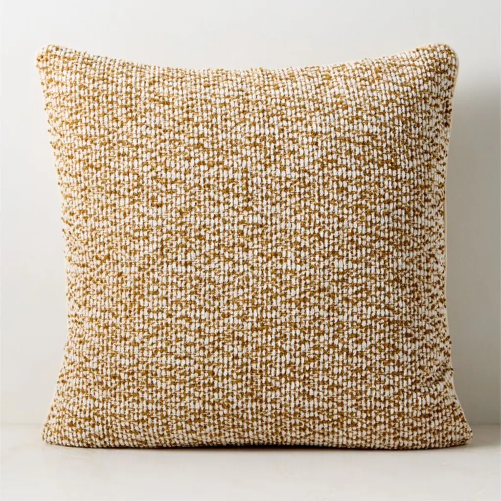 Woven in Italy, our wool-blend pillow covers add a warm finishing touch. Framed with white contrast piping, the pillows are woven with inviting texture in shades of taupe, warm white and smoked yellow. Our tweed pillow covers round out the assortment with a relaxed look and feel. CB2 exclusive.