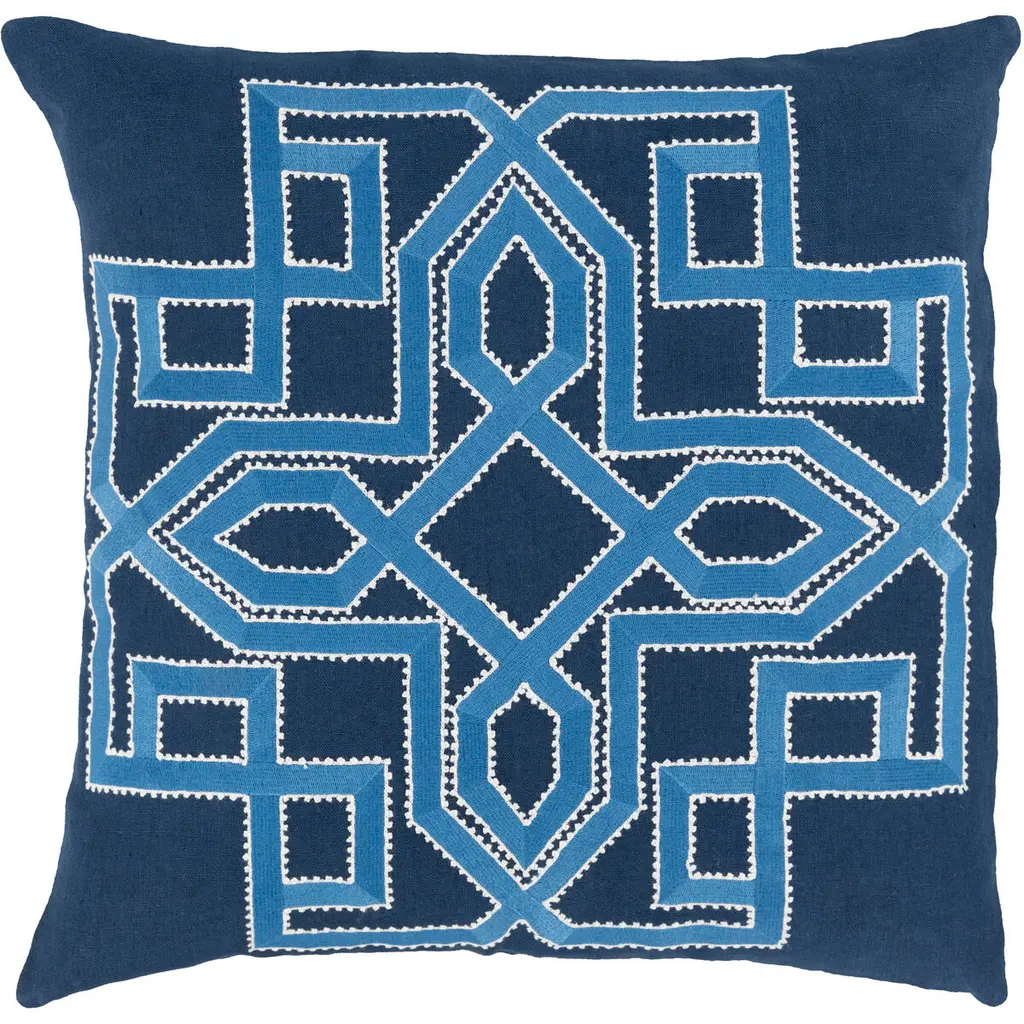 Intersect in symmetry with this perfect polished pillow from the Beth Lacefield collection. Featuring overlapping navy blue colored square shapes; this piece radiates a smooth symmetrical look that easily translates from room to room within your home. This pillow contains a zipper closure and provides a reliable and affordable solution to updating your home’s decor. Genuinely faultless in aspects of construction and style, this piece embodies impeccable artistry while maintaining principles of affordability and durable design, making it the ideal accent for your decor.