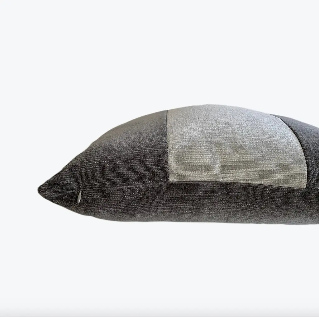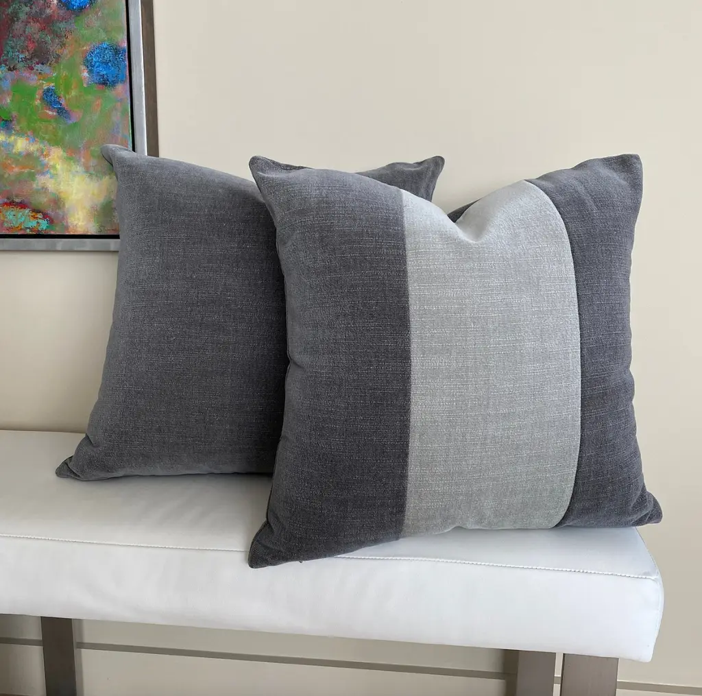Give your home a rich custom look with this modern two tone velvet throw pillow cover of graphite and slate gray. This cover is made of upholstery grade soft poly velvet that's very comfortable to lounge on and soft to the touch. The combination of the two fabrics is eye catching and striking. Our pillow covers are tapered at the corners to avoid pointy dog ears. When stuff they will be perfectly square. Handmade in the US. Fabric: Velvet Stuffing: 95/5 Feather Down Insert Care: Dry Clean Closure: Nylon zipper closure Made to order Will ship within 5 business days