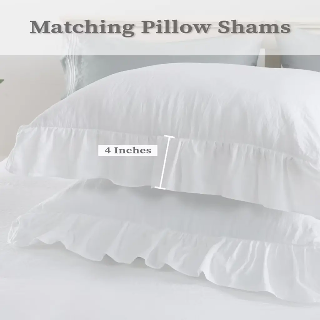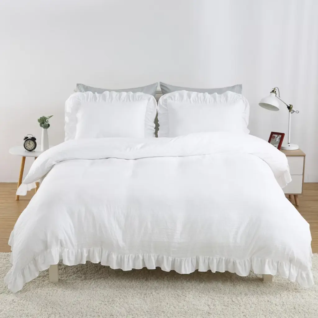Gustowave King Size Home Bedding Ruffles Duvet Cover Set With 2 Pillow Covers, White
