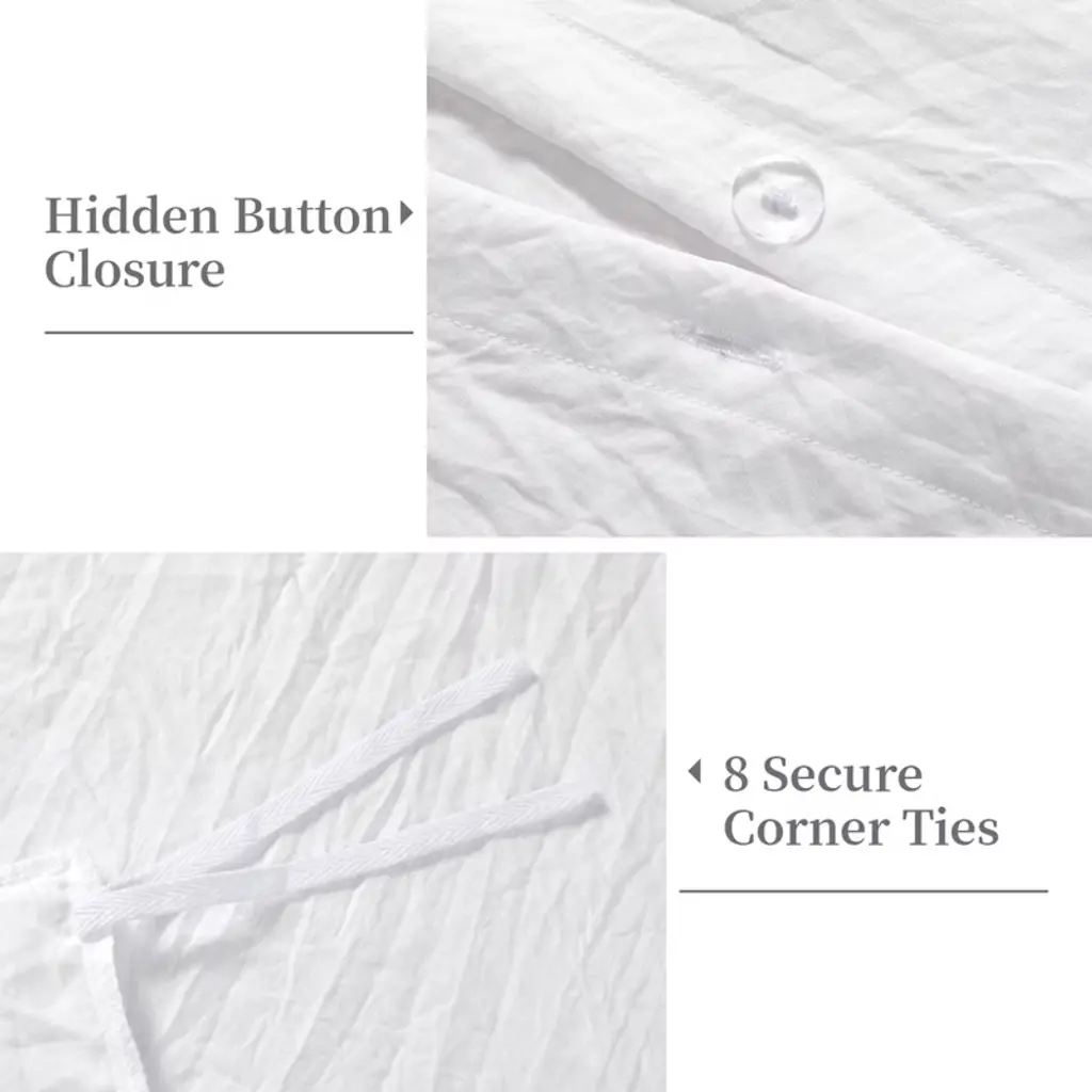 This vintage-style duvet cover set features an elegant ruffle design and is crafted from ultra-soft, pre-washed microfiber for year-round comfort and a cozy bedroom aesthetic. It includes practical hidden button closures and secure corner ties to keep the duvet in place, comes as a 3-piece king set, and is machine washable for easy care.