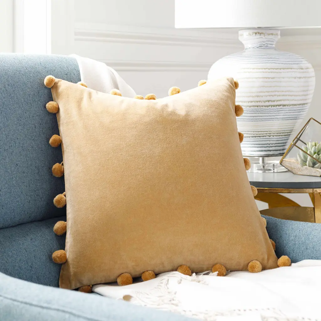 Hancock Tan Pom Pom Throw Pillow - Clearance - 18"h X 18"w Square Pillow Cover With Down Insert