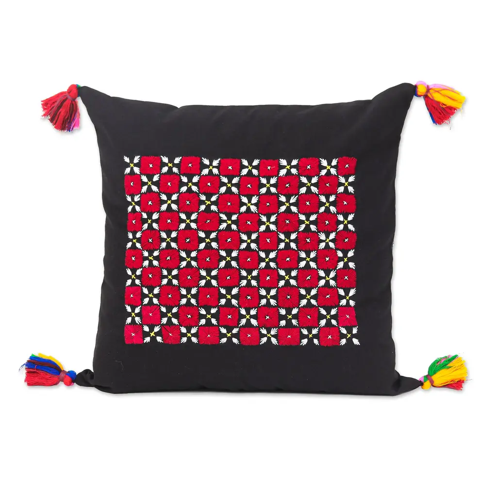 Handcrafted Embroidered Onyx Cotton Cushion Covers (Pair)- Cherry Mosaic