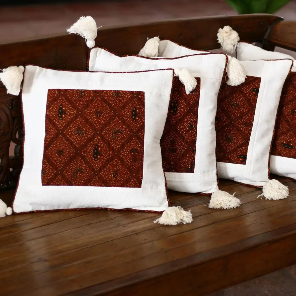 The Thai Tribal Crafts Association shows the world the talent and expertise of local artisans, who, proud of their culture, create stunning home accents full of an elegant vibe. This time, the team works with cotton to handcraft a pair of cushion covers in an onyx base hue and with colorful tassels adding a classic touch to the design. Equipped with a zipper at the back, each piece has an enchanting embroidered mosaic at the front, all in a palette of claret, ivory and jonquil hues evoking the splendor of the ancestral regional complexes.