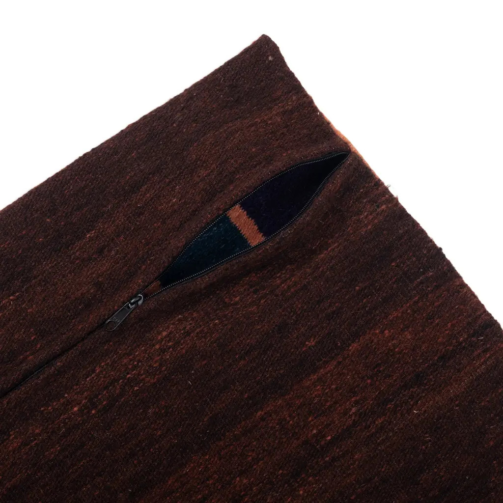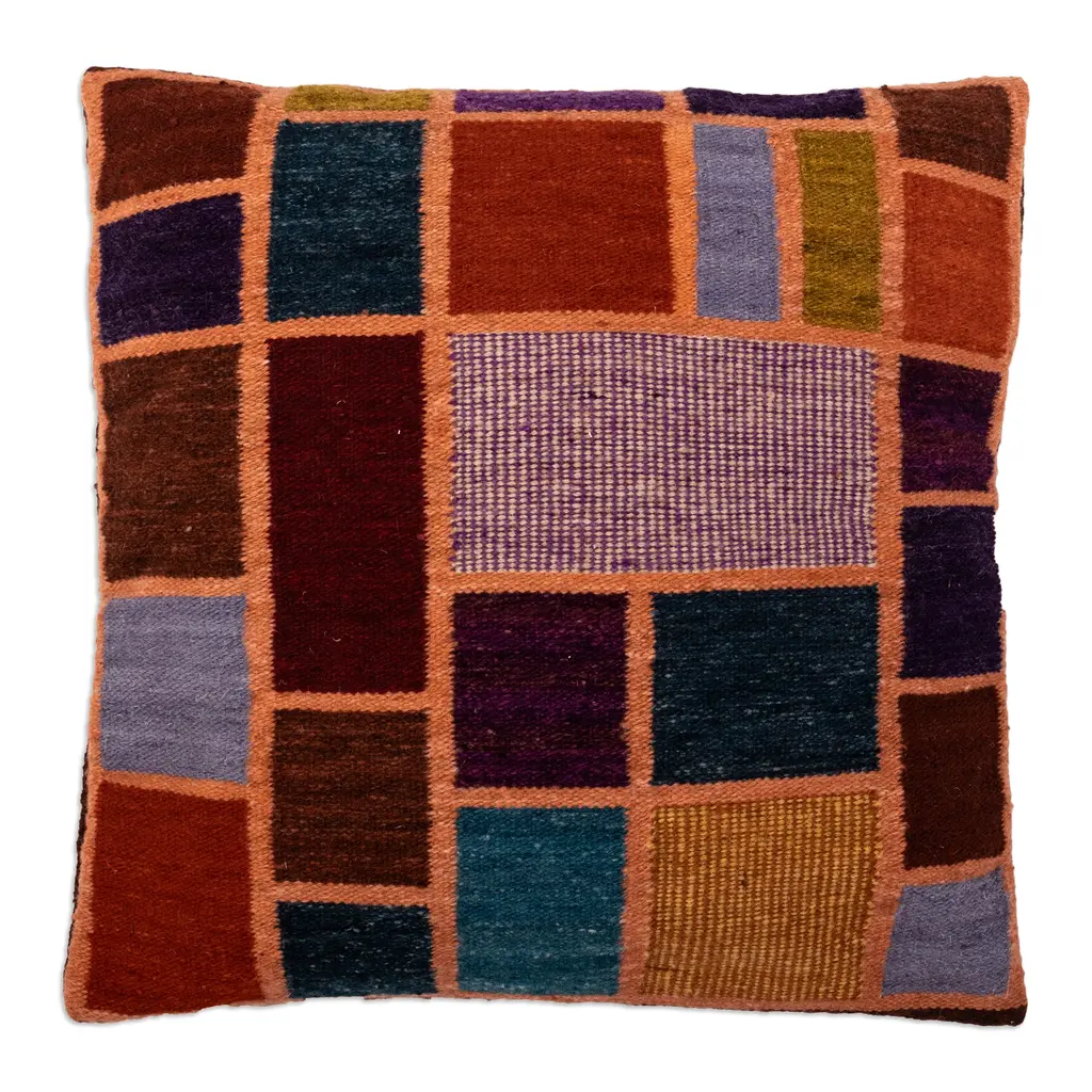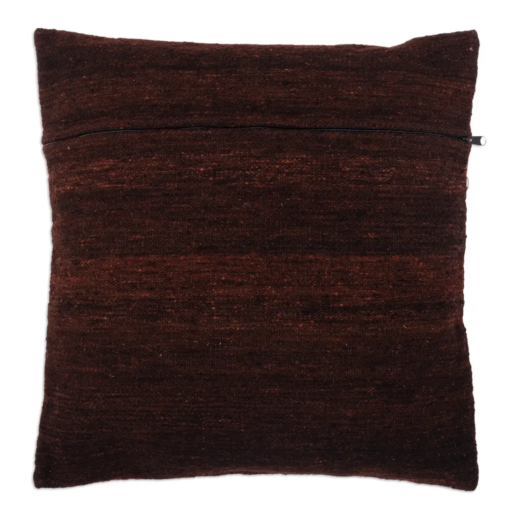 Evoking the stunning view of the Maras region's salt ponds, this stylish cushion cover aims to add a touch of classic beauty and bold energy to your interiors. Woven by Peruvian artisan Gerardo Fernandez, the accessory boasts refined wool yarns dyed with natural elements. The design also has a zipper on the back.