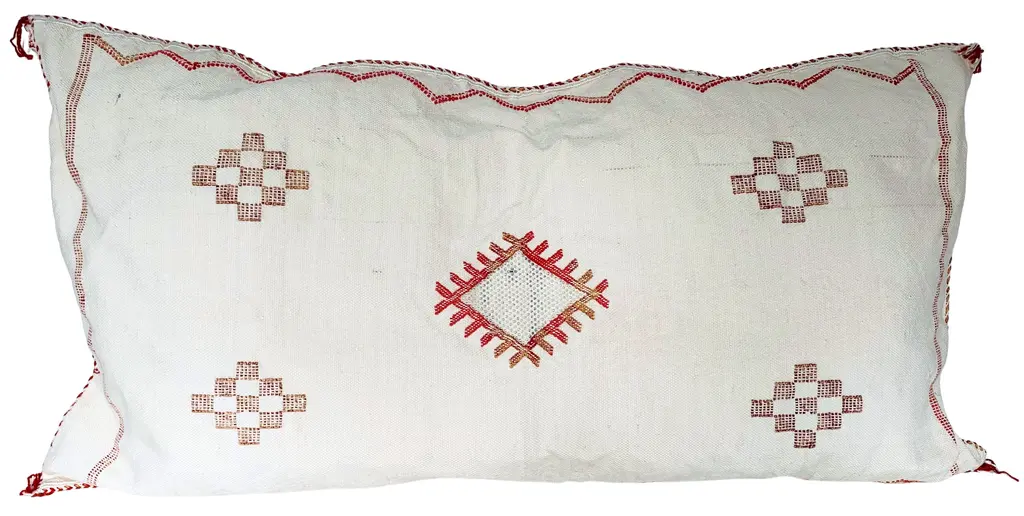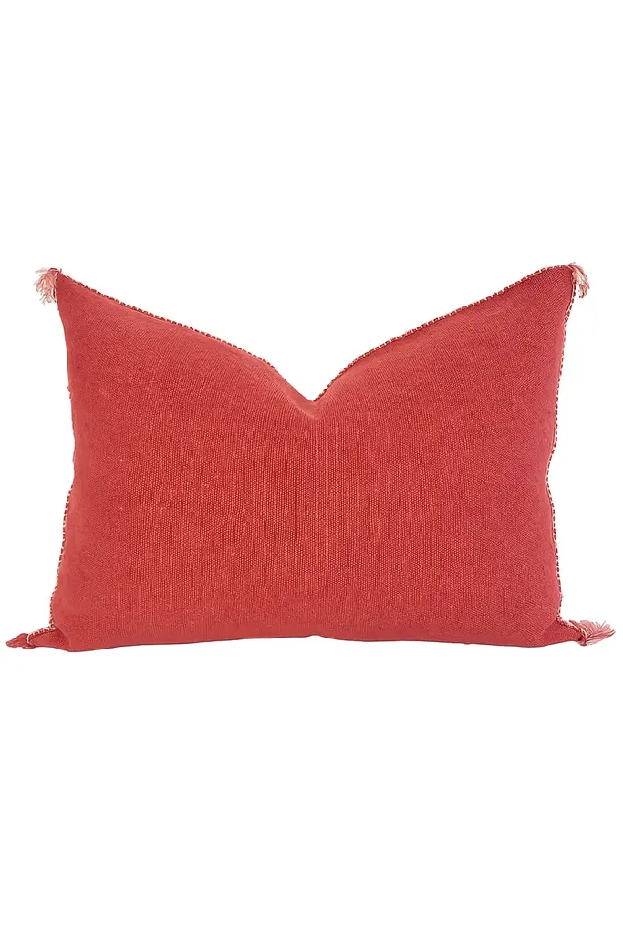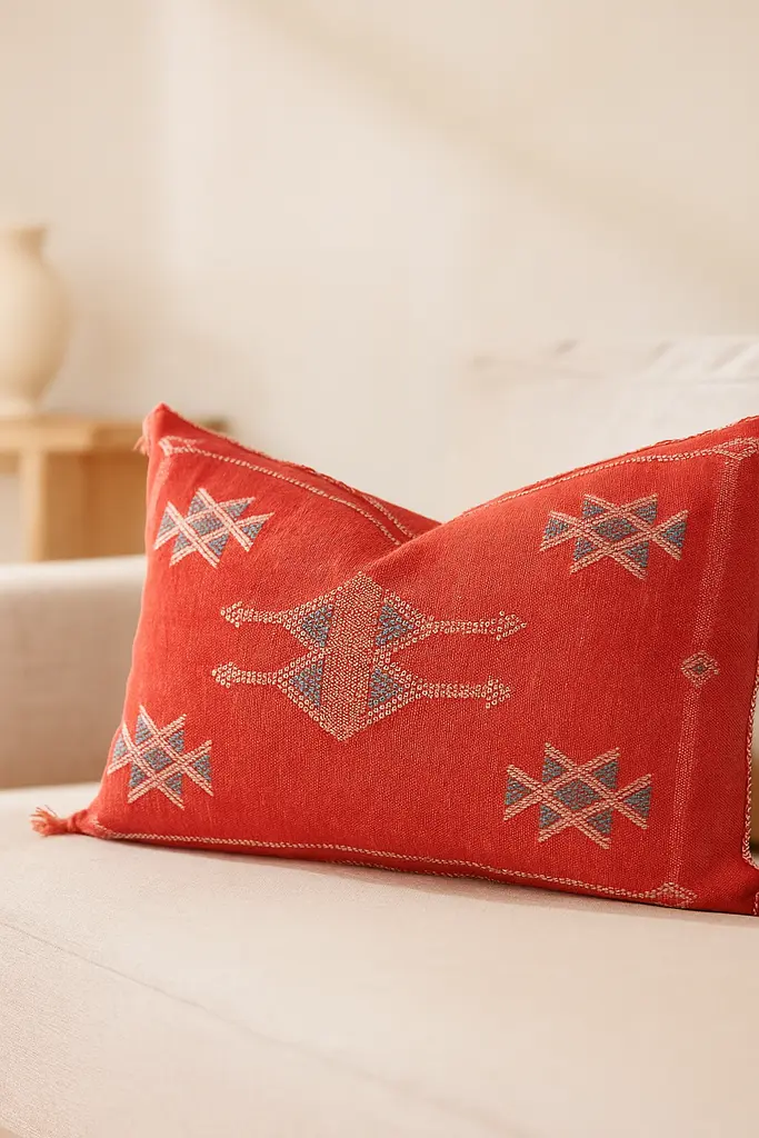Handmade Moroccan Cactus Silk Lumbar Pillow Cover In Red