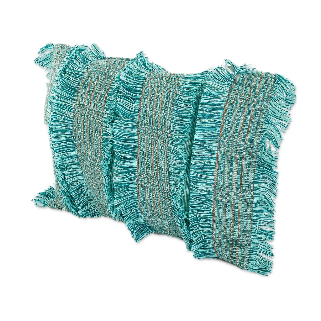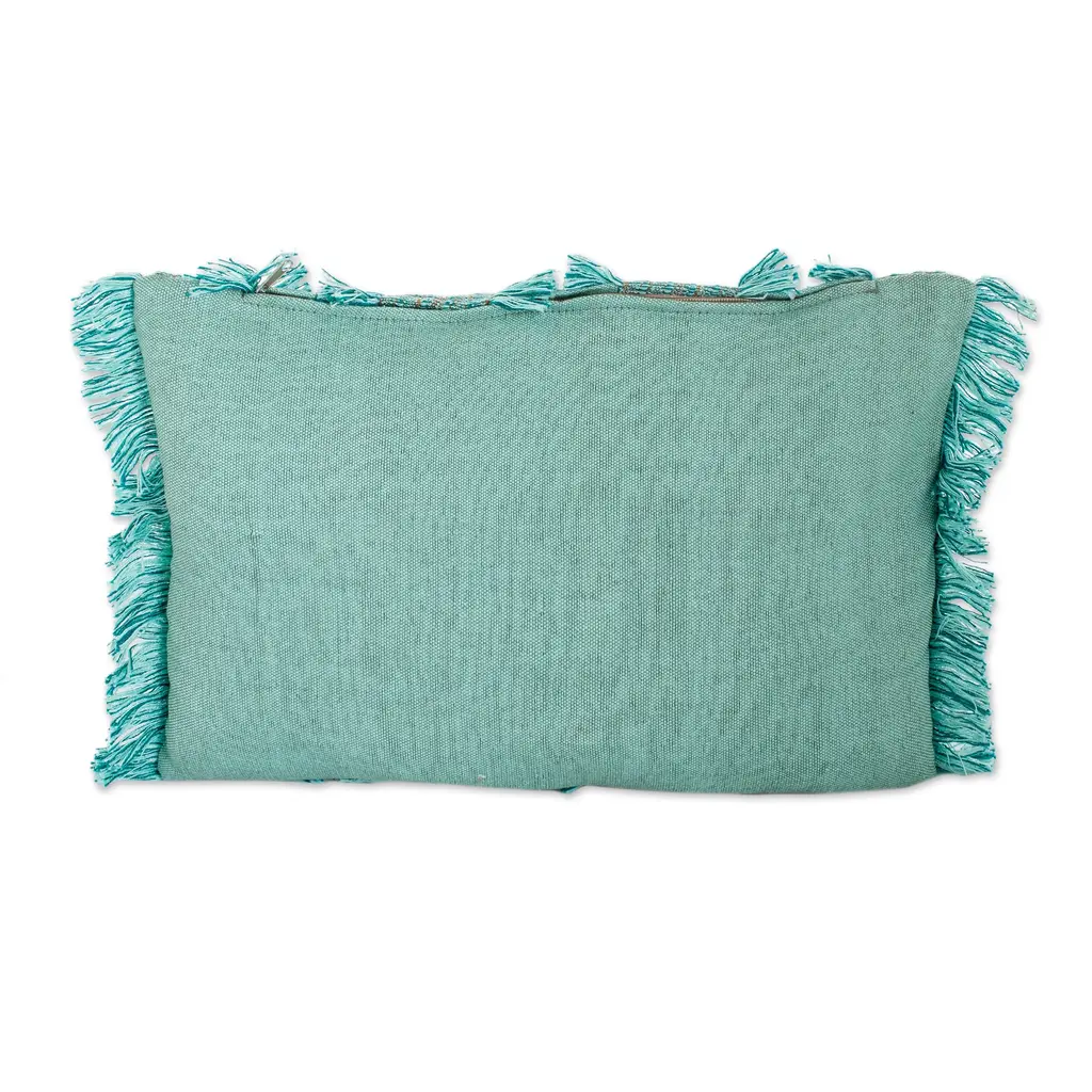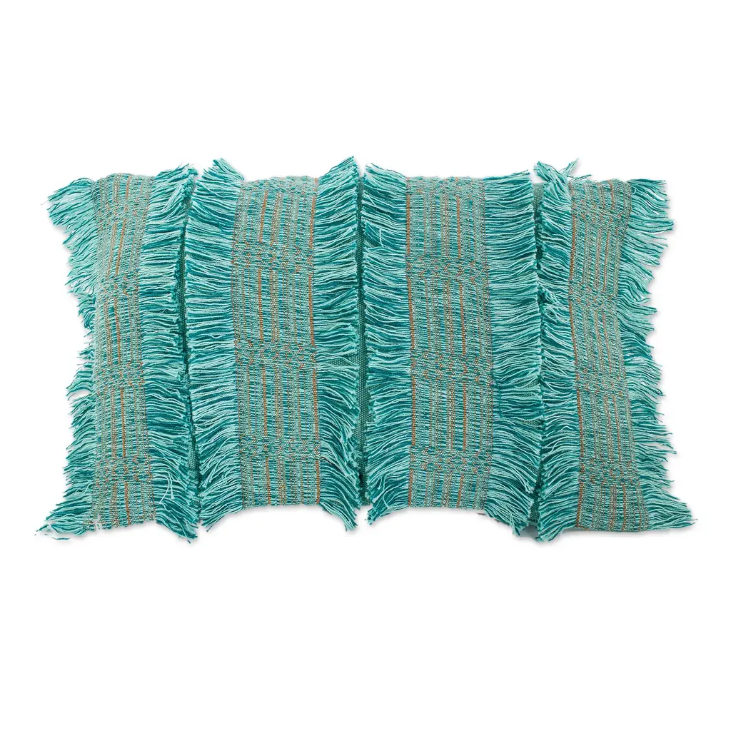 When you want to create a custom look for your living room, a textured handmade cushion cover is sure to make your home feel like a stylish sanctuary. Guatemala's Daniela Murga weaves mint, teal and sunrise cotton yarns on a backstrap loom to craft a stunning cover whose front panel is beautifully adorned with stripes and fringed accents while the back is solid and features a zipper closure.