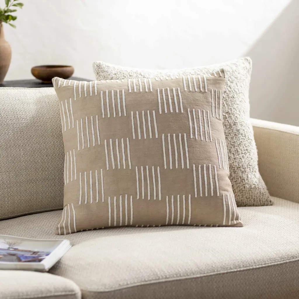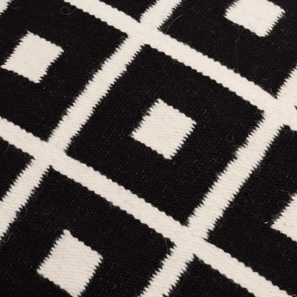 Like chic windows, a series of nine black squares decorates the antique white body of this cushion cover from Peru. Cerapio Vallejo designs this cushion cover, which he weaves by hand on a traditional artisanal loom. One one side, this elegant cover features a zipper for inserting a cushion.