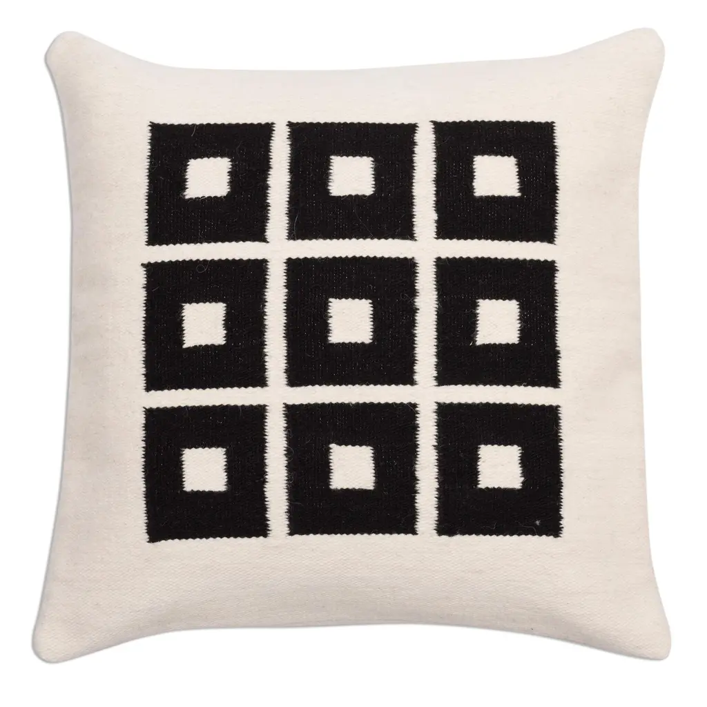 Handwoven Square Pattern Wool Cushion Cover From Peru- Chic Windows