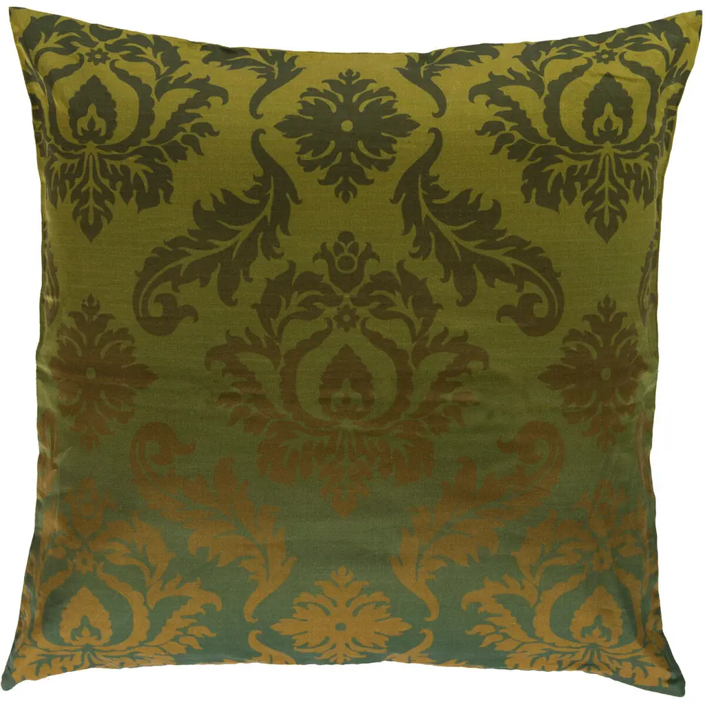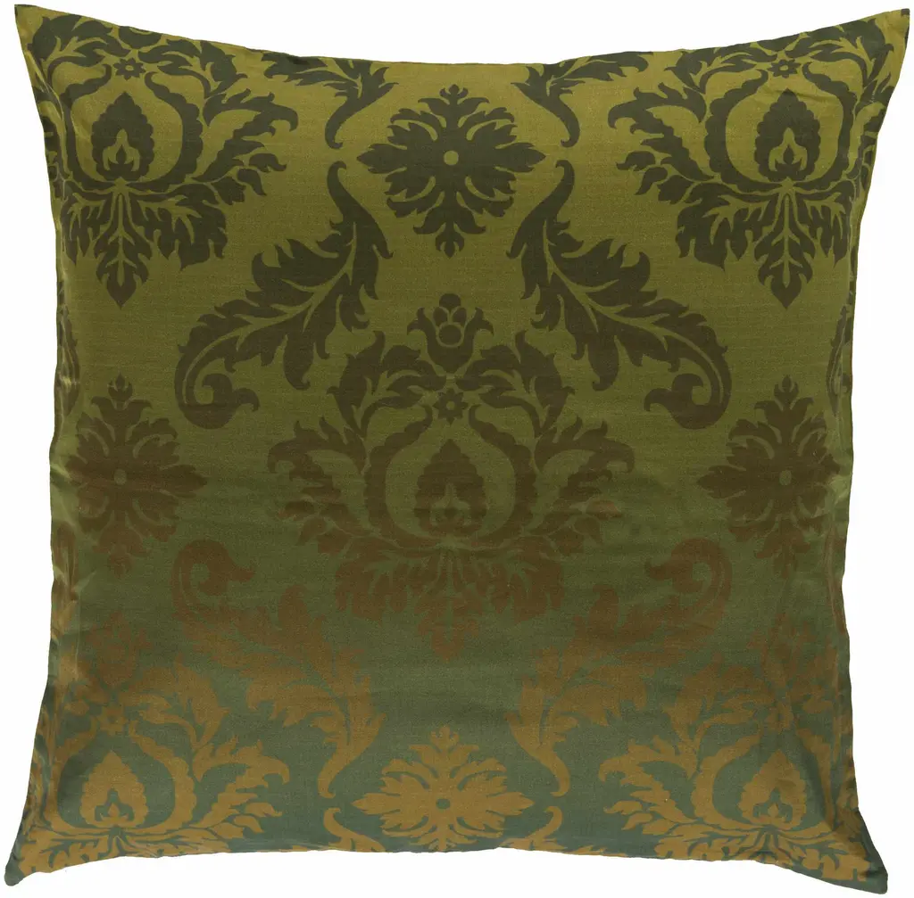 Holualoa Green Damask Square Accent Pillow - Clearance - 18" Square Pillow Cover With Down Insert