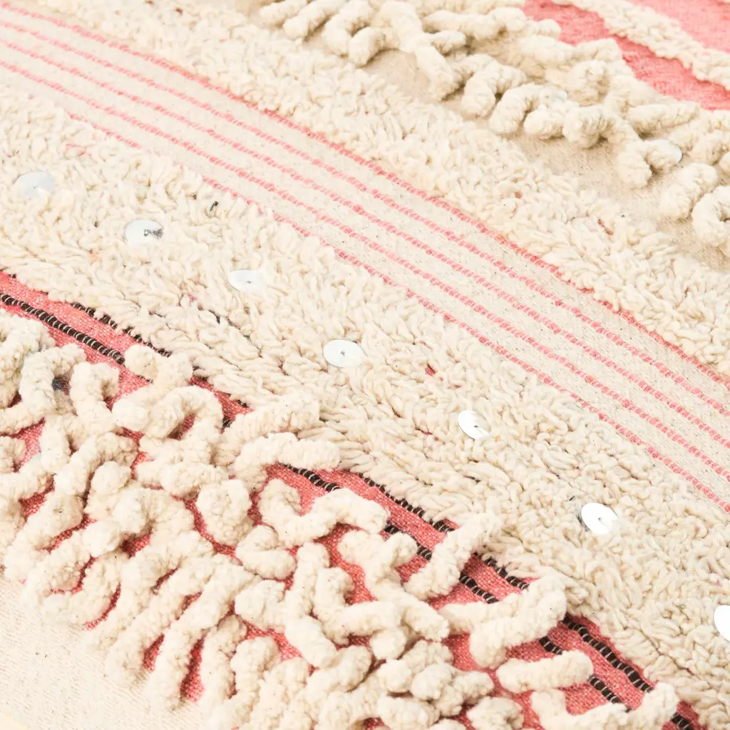 Collection: Hopatcong Colors: Peach, Black, Beige Construction: Woven Material: Front: 70% Cotton, 30% Polyester / Back: 100% Cotton Styles: Transitional,Bohemian Made In: India