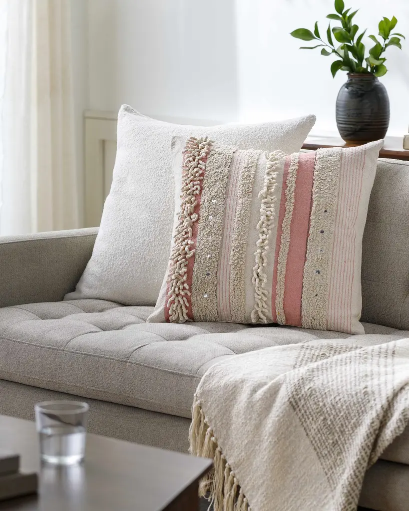 Hopatcong Peach Textured Striped Throw Pillow - 22"h X 22"w Square Pillow Cover With Down Insert