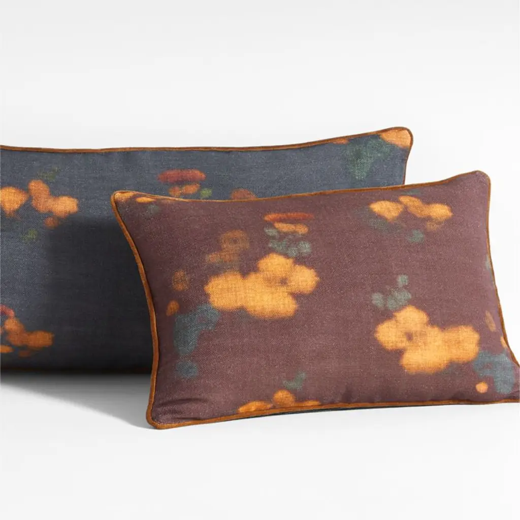 Painterly florals inspired by Impressionist art glow against the deep burgundy background of our throw pillow cover. Printed in rich oranges and greens on a cotton-jute blend, the organic pattern reinterprets Impressionism's pure color and play of light for the modern home. Caramel-hued velvet piping completes the romantic look that coordinates with our Impressionist bedding collection. Fill our exclusive lumbar pillow cover with a plush feather or lofty down-alternative insert sold separately.