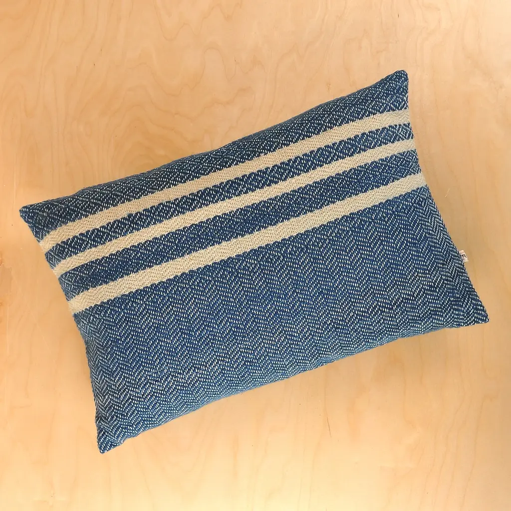 Indigo And Ecru Wool Cushion Cover With Geometric Motifs- Indigo Signals