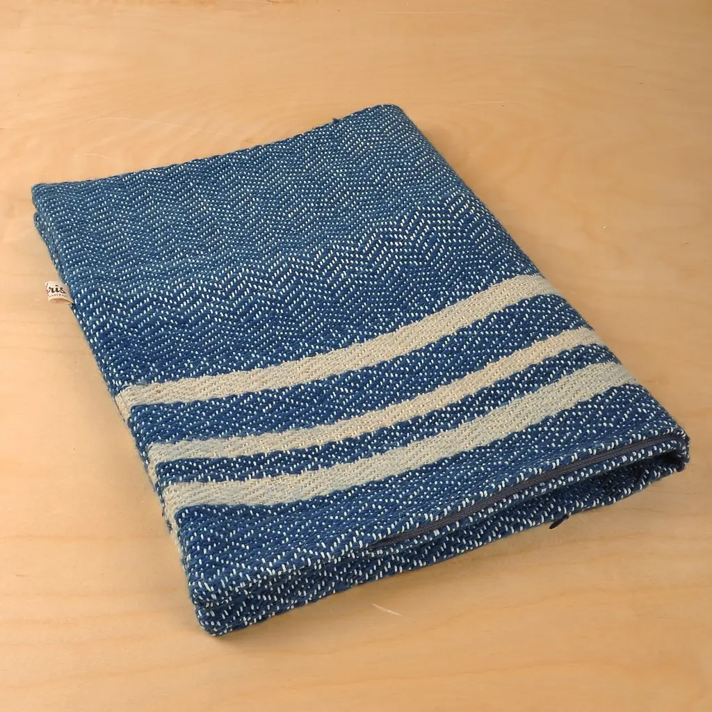 The Goris Artisan Group from Armenia uses natural dyes to bring a gorgeous design to life. After years in the field, this talented team knows how to put traditional techniques into practice to create sublime accessories with an elegant aura, like this wool cushion cover in an exquisite palette of indigo and ecru hues. The design features geometric motifs combined with stripes, and its zippered opening allows easy use.