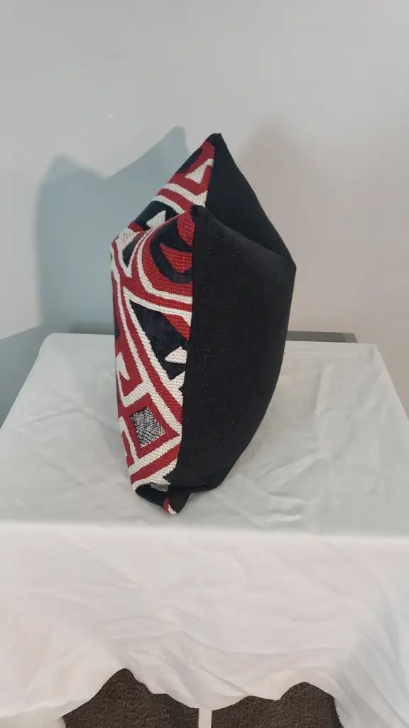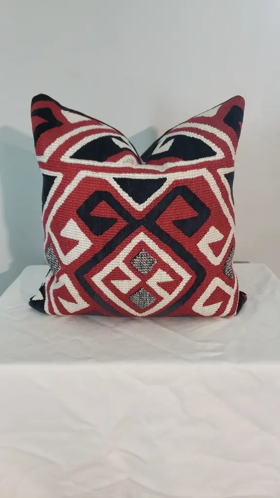 James Malone Medina 154 Chilaba Fabric Front Face Black linen back fabric. Size: 18" x 18" Hidden zipper. Pillow Cover Only. Dry Clean only. Medina Chibala fabric Information: Composition: 55% Pol. 30% Vis. 15% Lin. Width:137 Vertical Rapport: 51,40 Horizontal Rapport: 70 Pilling: 4 Martindale: 30,000