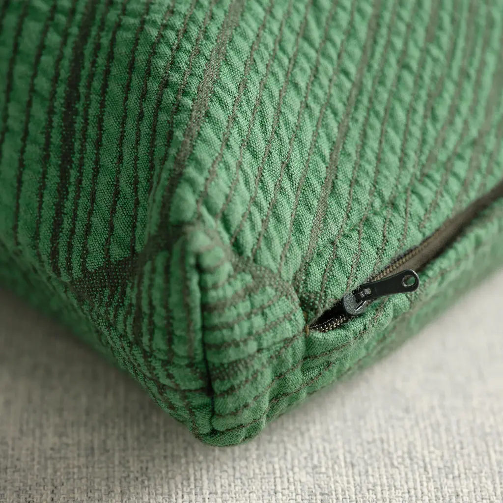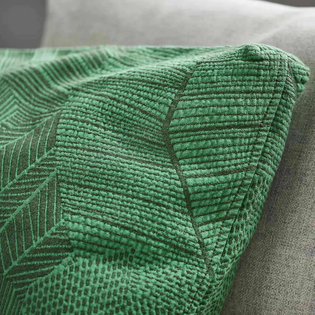 JÄTTEGRAN Cushion cover - green 20x20 ". The jacquard weave adds tactility and enhances the expression of the pattern. The cushion cover pairs nicely with the handwoven LAPPTÅG throw with a natural look and tactile feel. The zipper makes the cover easy to remove and machine wash.