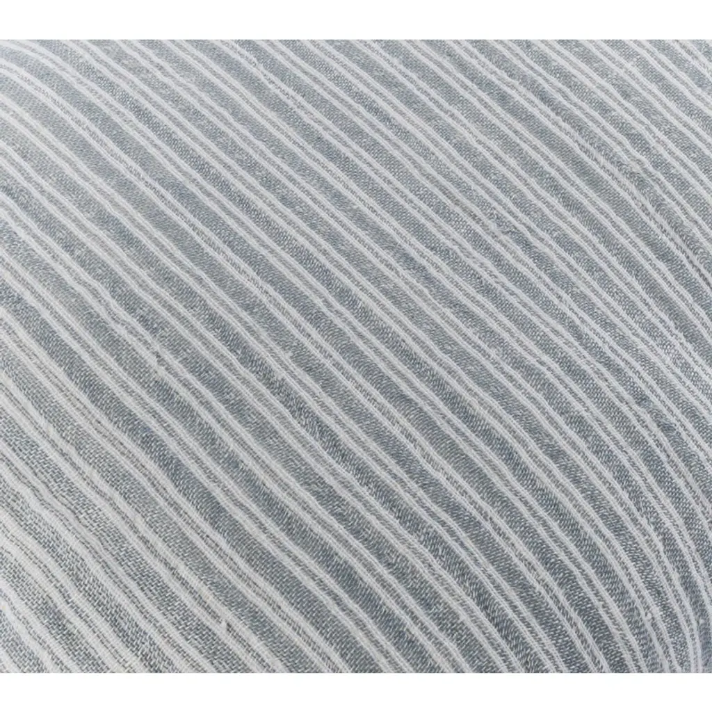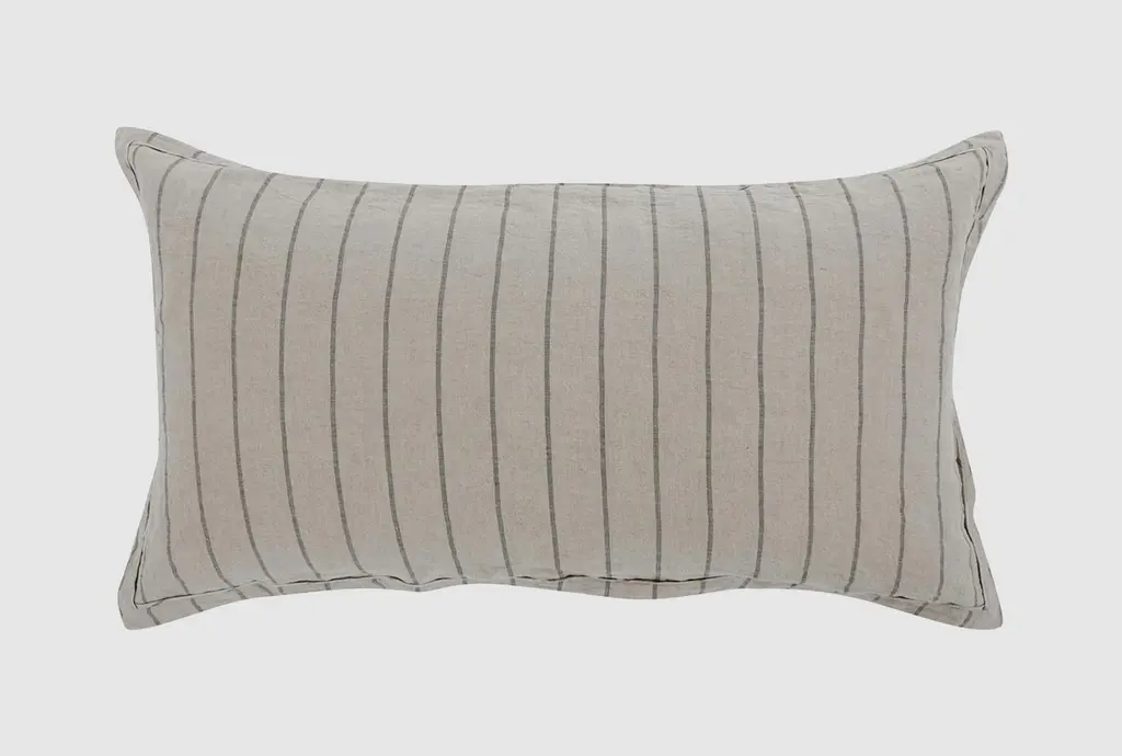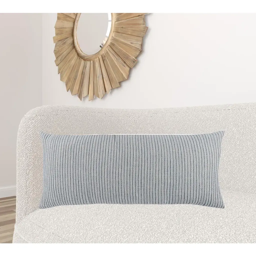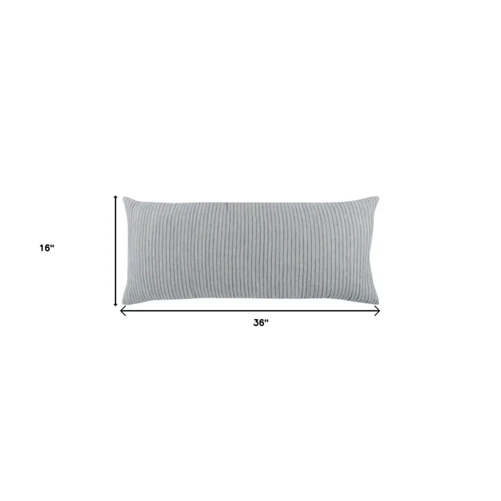 The perfect complement to your sofa, favorite chair, or bed, this 16" x 36" blue linen striped zippered pillow is a great decorative accent. This soft and durable decorative pillow is expertly made of high grade, long lasting linen in a blue coloration. Great to use on its own or mix with other decorations for the perfect look. A great decorative accessory for your favorite chair, to accent your sofa, or to use as part of your bed ensemble. 16" H x 36" W x 5" D This lumbar throw pillow invites dimension to any living room sofa or guest bed with its multicolored striped pattern. It's made from double-layered fabric and comes with an included down-feather pillow insert that's enclosed by a hidden zipper. Just be sure to spot clean only when it needs a refresh.