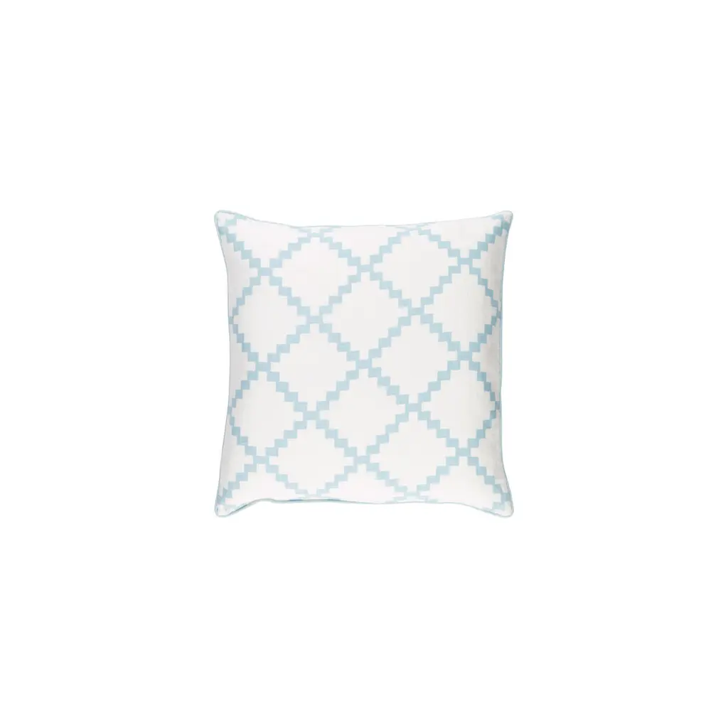 A carefully arranged duet of floral and geometric blocks in shades of blue, block printed by hand.* Insert not included* Hand block printed on both sides* Hand stitched edging in azure* Hidden zipper closure* 55% Linen/45% Cotton* Machine wash cold separately delicate cycle, tumble dry low, do not bleach, iron at medium setting if necessary.* Imported#### *Dimensions** 22" x 22"