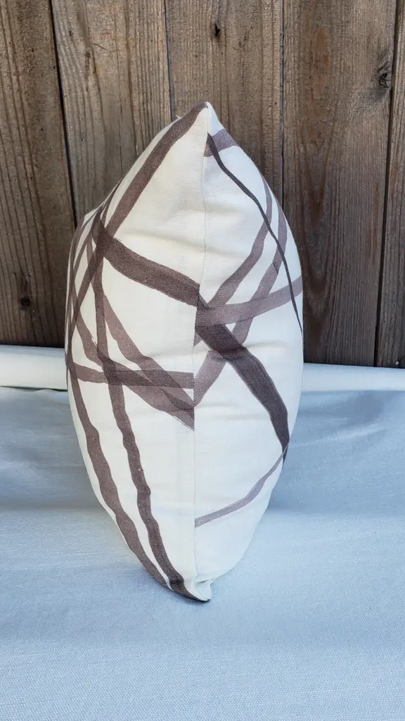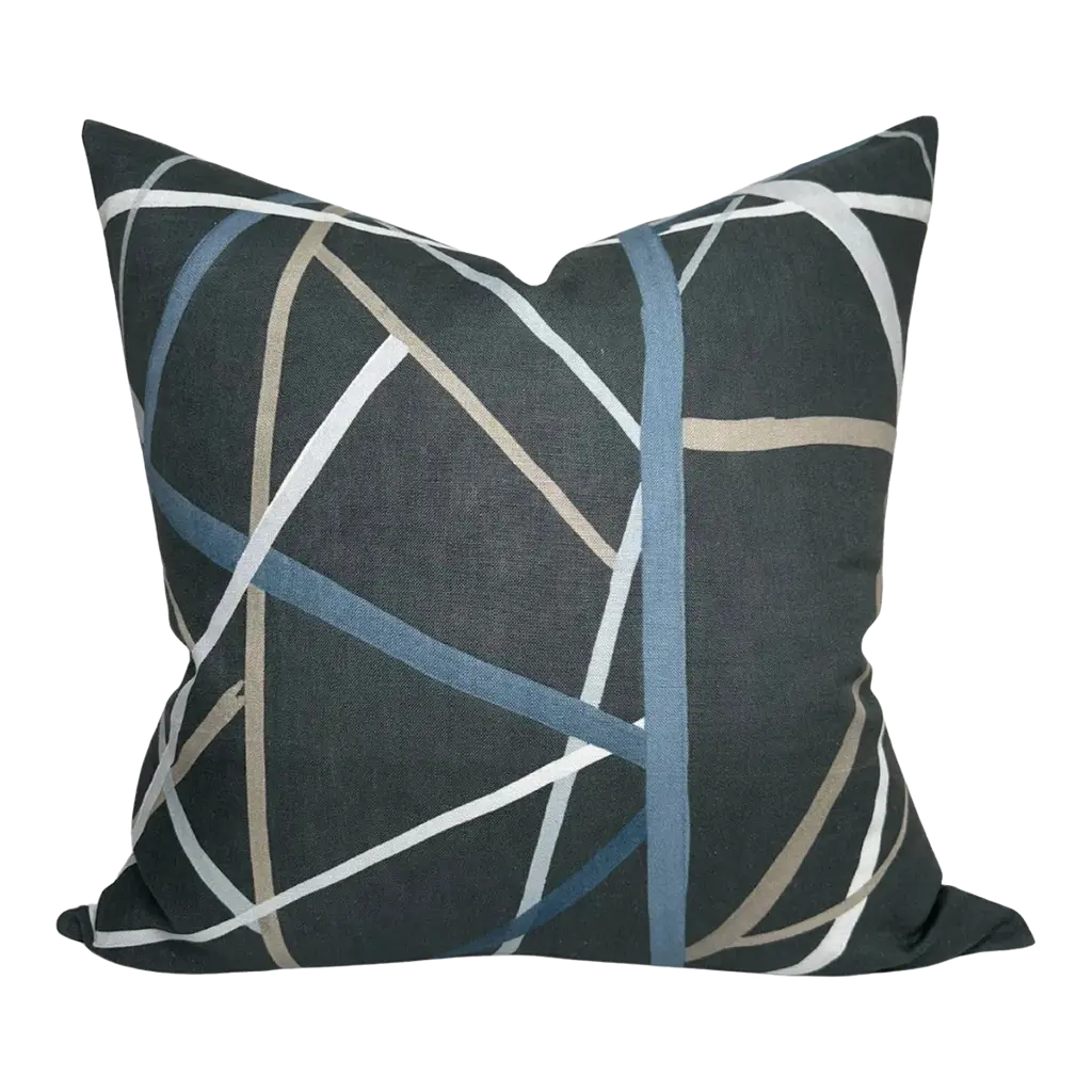 Channel Fabric on both sides. Size: 18" x 18" Hidden zipper Pillow Cover Only. Kelly Wearstler Fabric Info: Material: 100% Linen Repeat Width: 27.5" Fabric Width: 55" Repeat Height: 41.5"