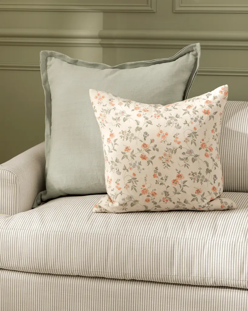 Add a touch of whimsy to your pillow vignette with our Kittredge Floral Pillow Cover. Featuring a ditsy floral pattern in a palette of light rust red, olive, and soft lavender, the textile is a playful take on a vintage-inspired textile.