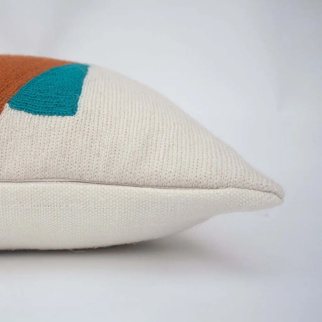 Adds instant warmth to your home's seating. Takes inspiration from symmetrical architecture. Features an abstract design in a modern palette. Ethically hand embroidered by Indian artisans.
