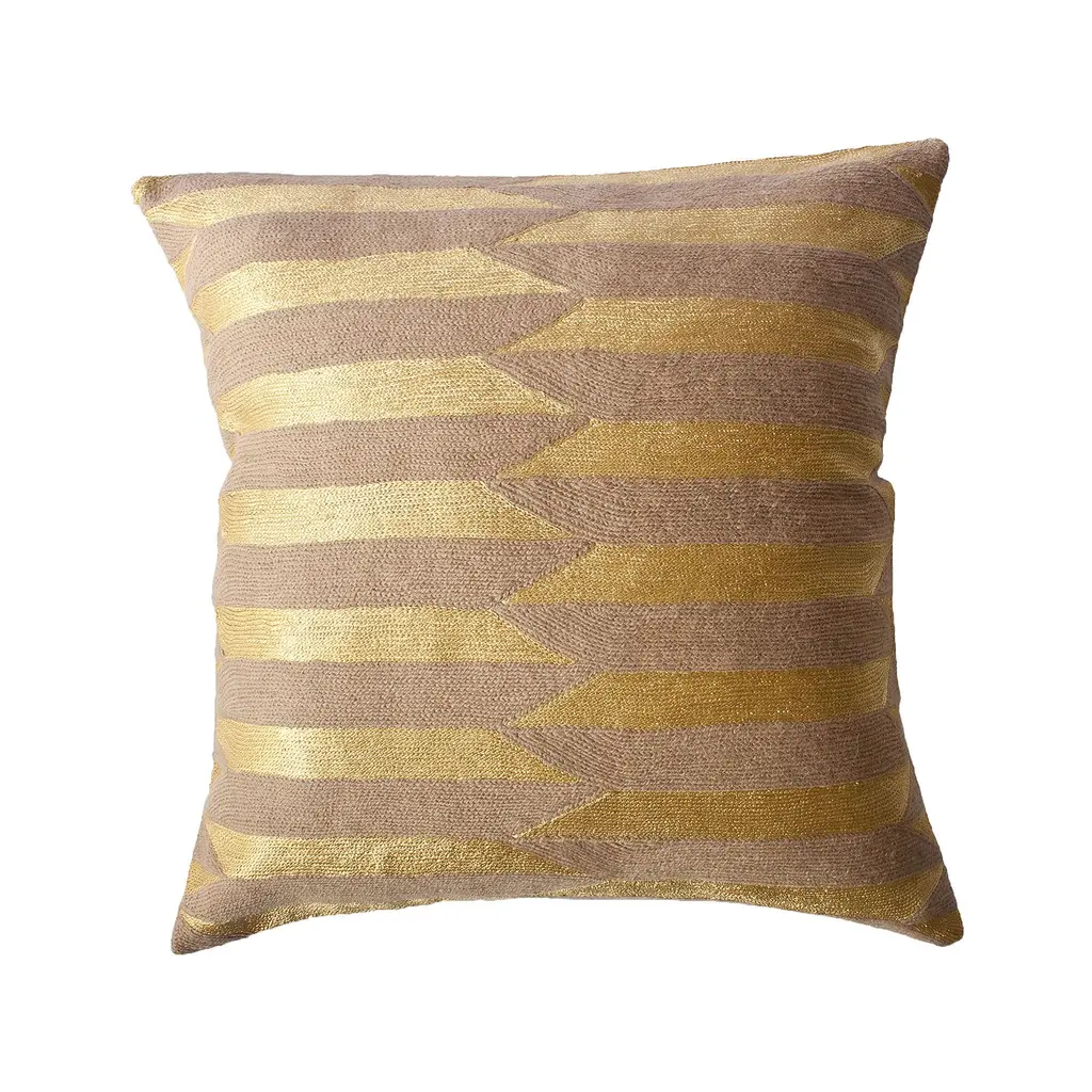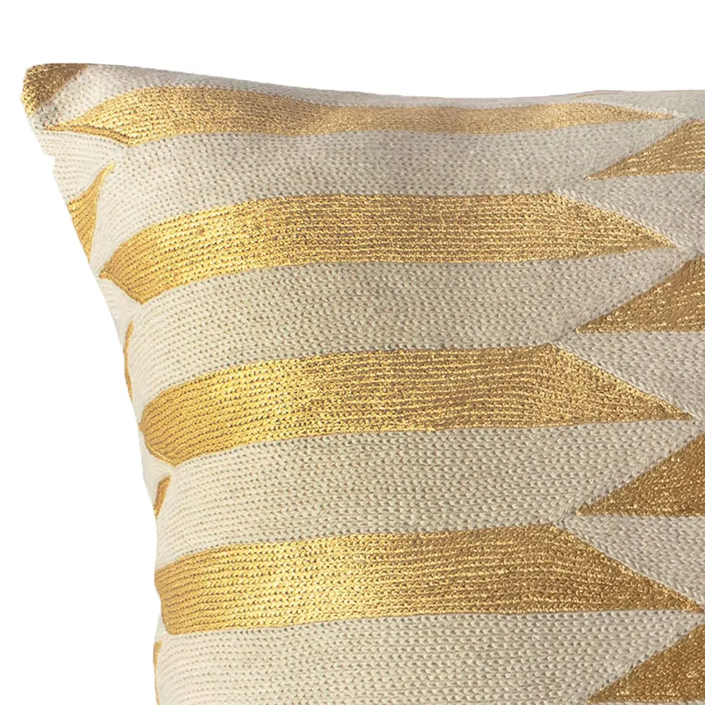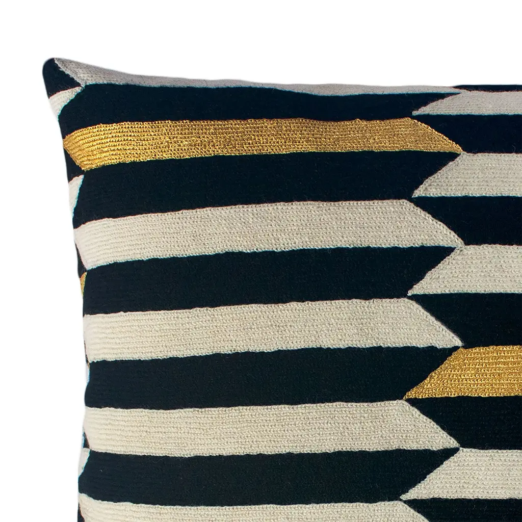 Modern pattern meets traditional craftsmanship. Hand embroidered by artisans in India. Made using age-old techniques native to the region.