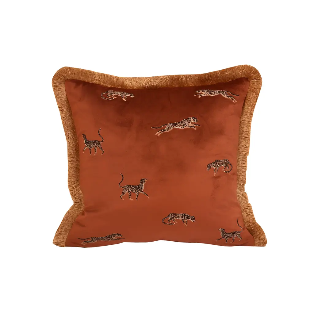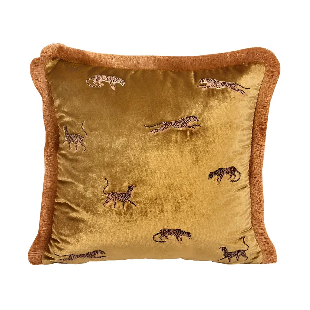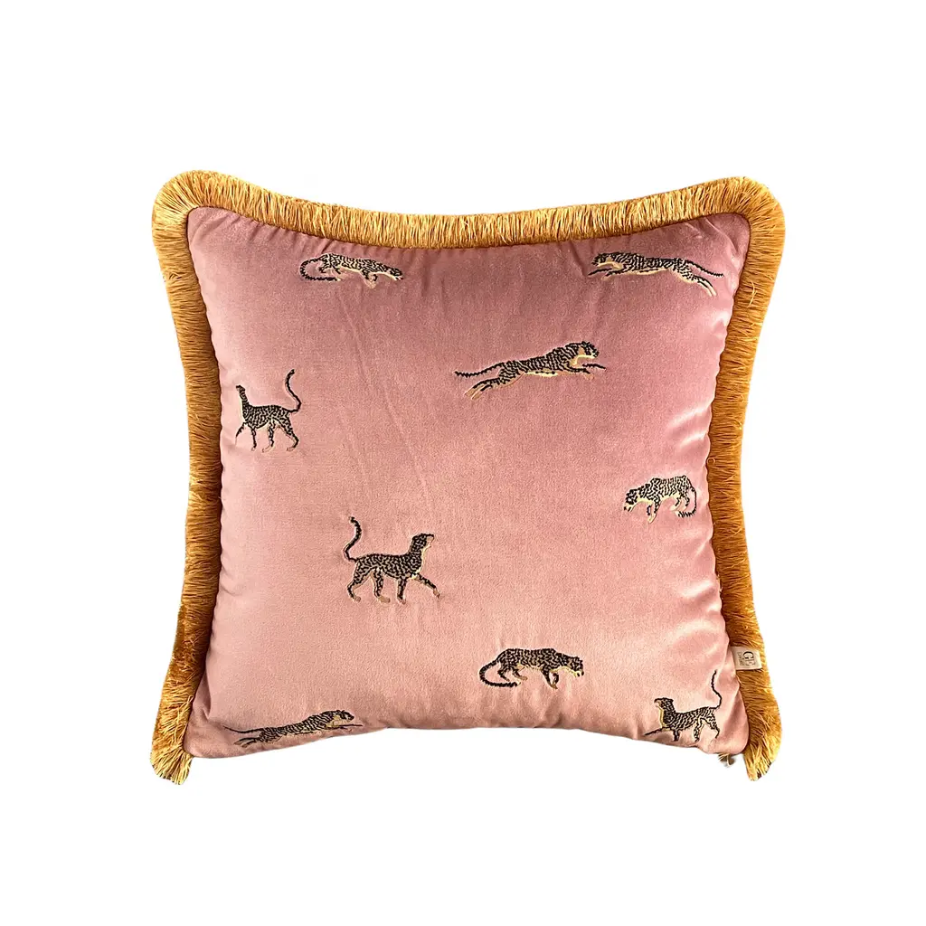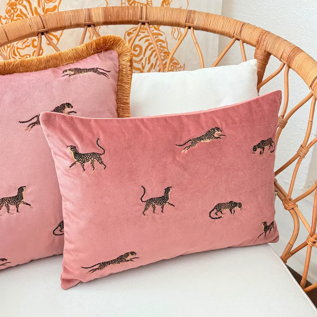 Leopard Print Pink Velvet Pillow Cover – Embroidered Boho Home Decor