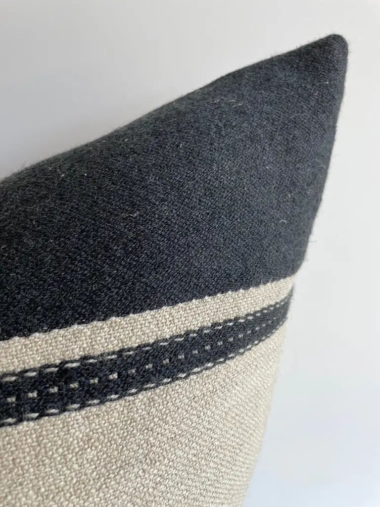 Linen And Wool Marshall Stripe Black And Natural Pillow Cover