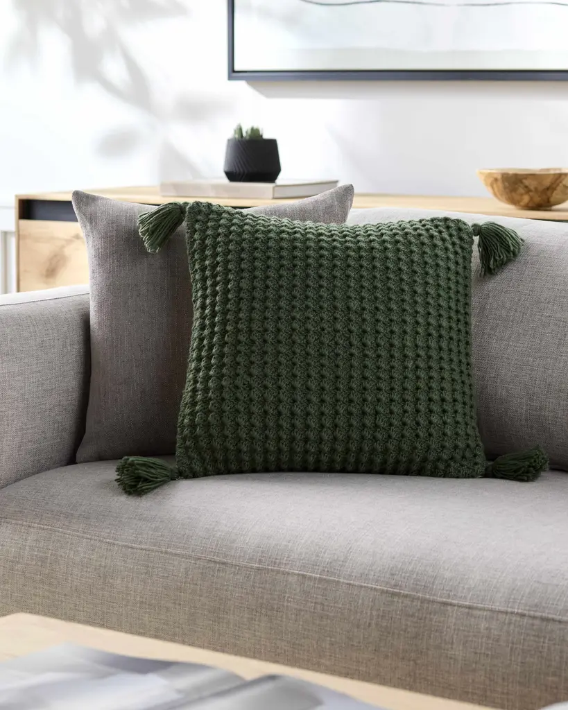 Litzy Olive Green Throw Pillow - 22" Square Pillow Cover With Down Insert