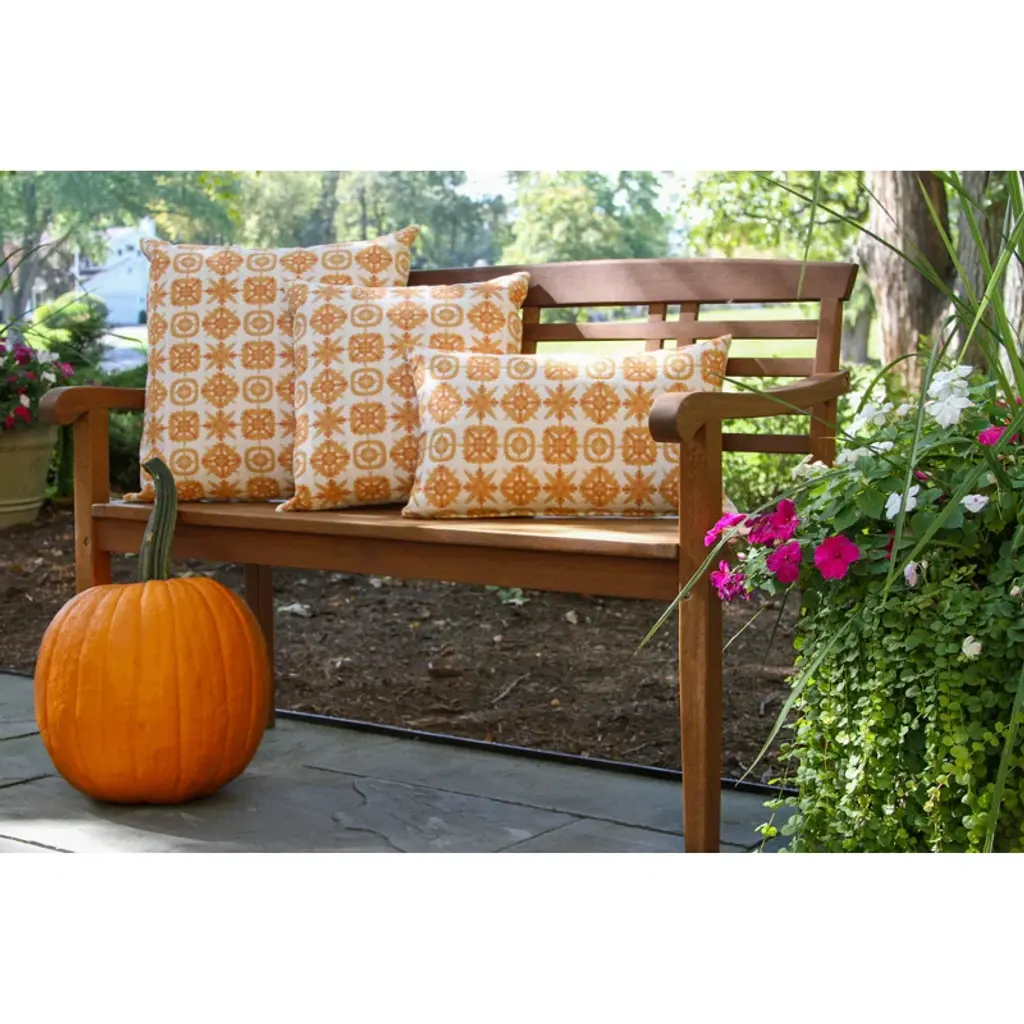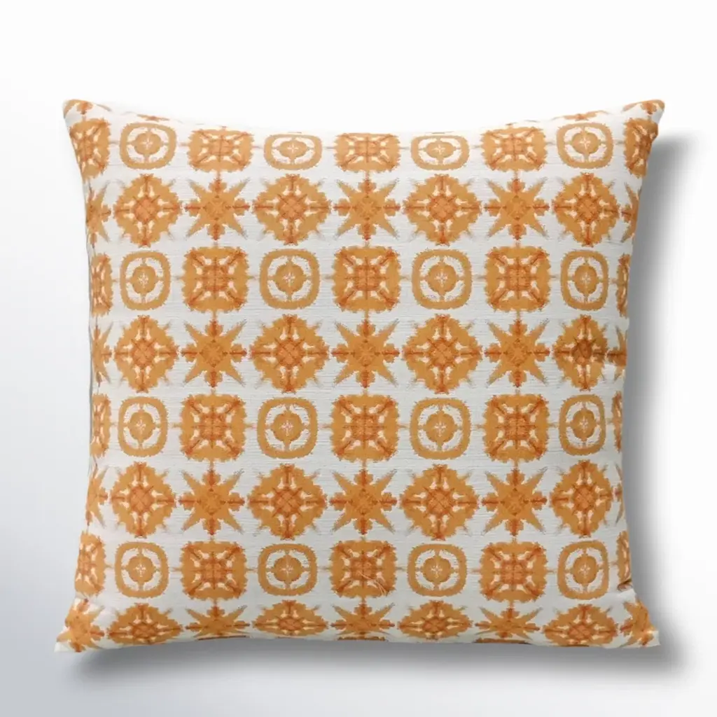 Add a pop of color to your patio furniture with this vibrant pillow cover and insert. Crafted from solution-dyed woven polyester, this UV- and weather-resistant pillow is designed to withstand the elements while adding a touch of cheer to your outdoor space. A playful floral pattern in rich orange and white hues brings a touch of bohemian charm, while the included polyfill insert provides lasting comfort and support. Whether you’re lounging poolside or enjoying an alfresco meal, this pillow adds a touch of sunshine to your outdoor decor.