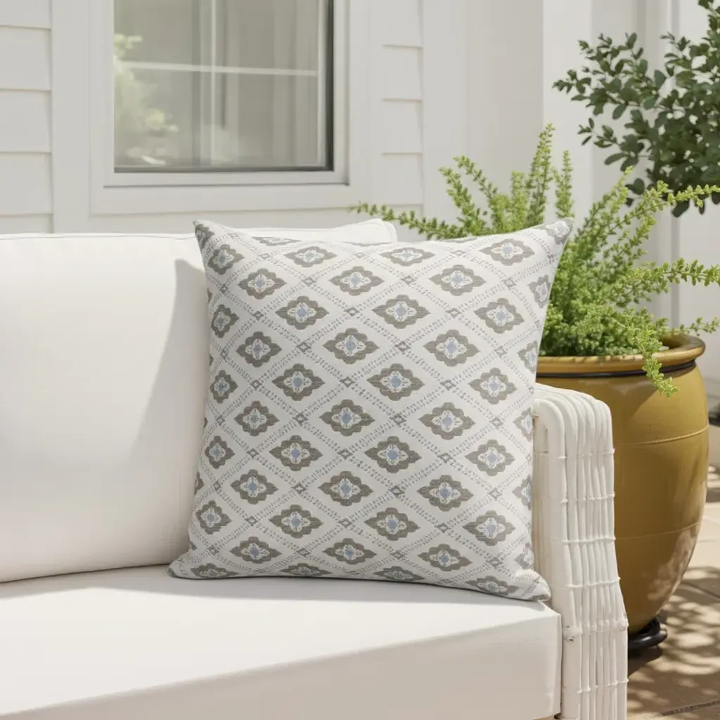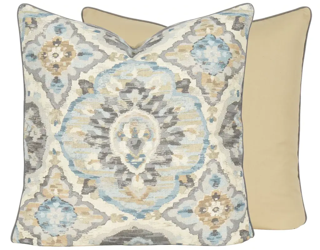 Liza Pillow Cover & Insert Square In White/tan/blue (Set Of 2)
