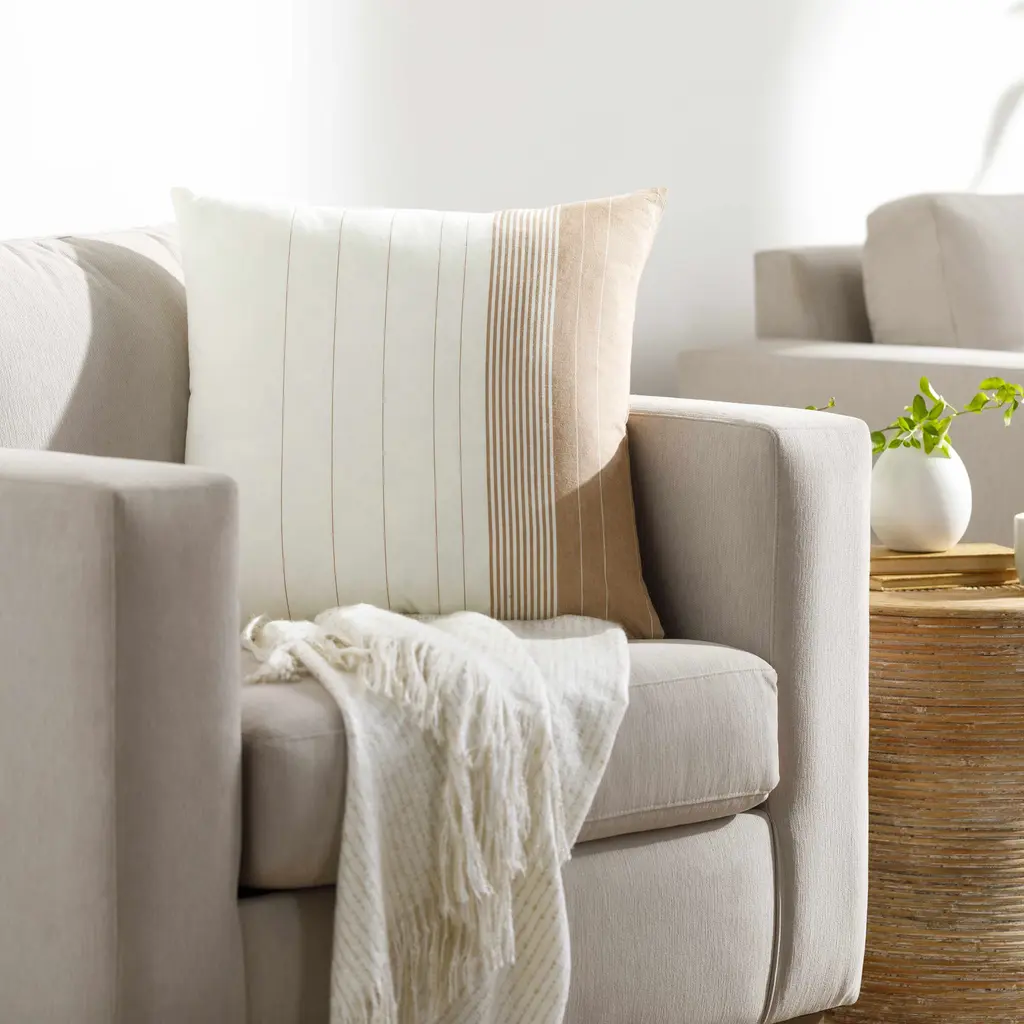 Lonny Ivory Throw Pillow - 22" Square Pillow Cover With Down Insert