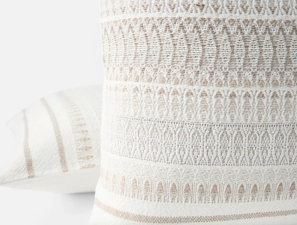 Inspired by the colors and textures of the place where land and water meet, our pillow is woven with detailed dobby stripes in mellow, sun-washed hues. The soft, substantial organic cotton cover reverses to smooth percale with an envelope closure.