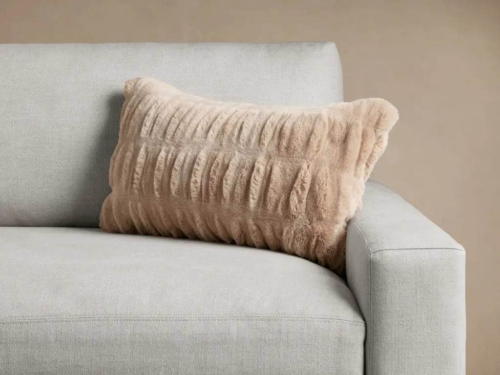 Sophisticated in style with cloud-like comfort, our Luxe Faux Fur Pleated Lumbar Pillow Cover adds warmth and sumptuous texture to any bedroom or living space. Front is made from 80% acrylic and 20% polyester. Back is made from 100% polyester. Features faux fur on both front and back. Hidden zip closure. For a full and fluffy look, we recommend pairing this cover with our 14" x 26" Decorative Pillow Insert (61CORE1426). Insert sold separately. OEKO-TEX® STANDARD 100 Certified: Certificate #SHO25 183031. This textile has been tested for harmful substances and is certified to help keep your home safe.