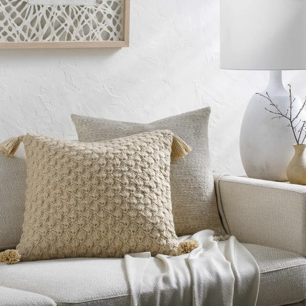 Magan Beige Throw Pillow - 18" Square Pillow Cover With Down Insert