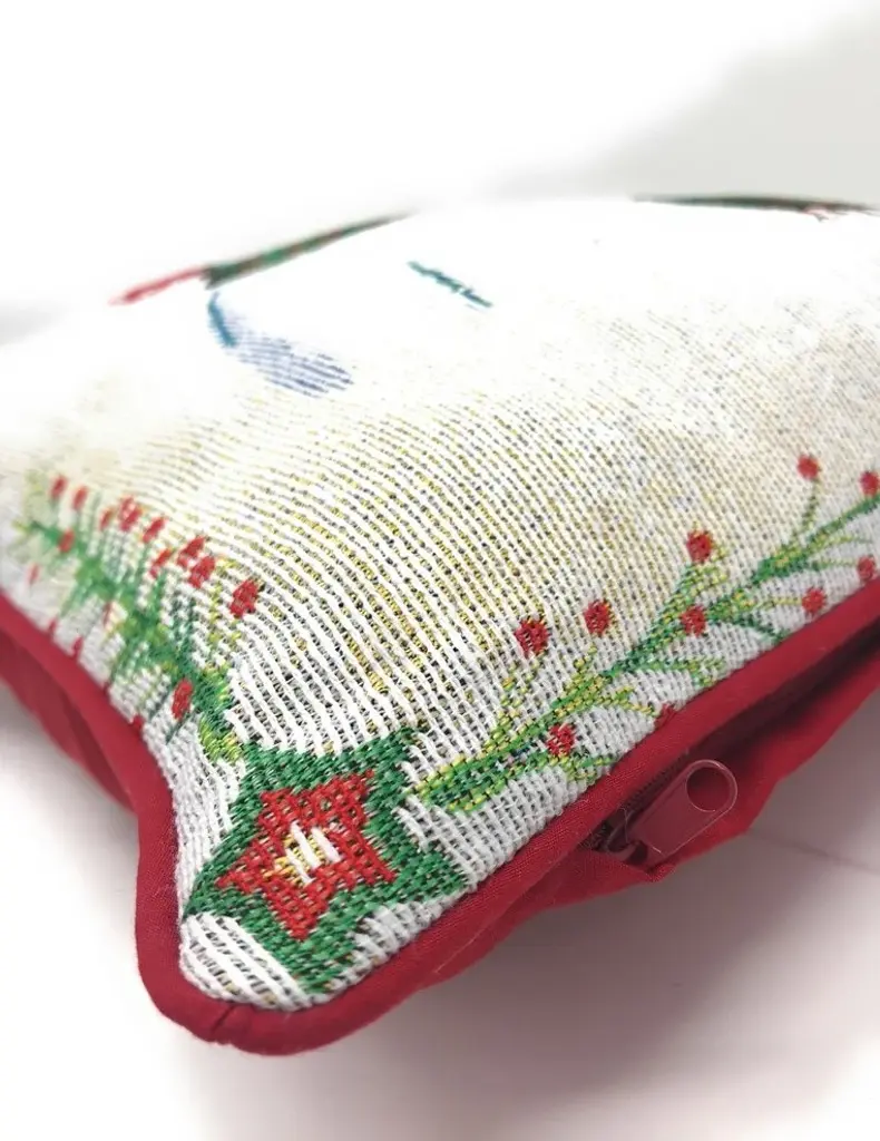 Have fun decorating with our super cute one of a kind holiday white snowman DaDa Bedding throw pillow cover.Be a little bit more festive this Christmas season with our lightweight, durable and woven cotton linen throw pillow cushion covers.They"™re super easy to use and a cute accent to your home décor.FeaturesBeautiful and intricate throw pillow coverBackside of cover is a solid red colorPillow inserts are NOT includedZipper closure is hidden in the side of the coverFabric: Woven/StitchedMade in China DimensionsChoose from two options:One Piece 16"� x 16"� Throw Pillow CoverSet of Two Pieces 16"� x 16"� Throw Pillow CoversCover can fit up to 20"� pillow insertMaterialFace: 25% Cotton, 75% PolyesterBack: 35% Cotton, 65% Polyester Washing Care InstructionsHand wash with warm gentle soap, and line to air dry.Do not machine wash, do not bleach, do not tumble dry, and do not iron.