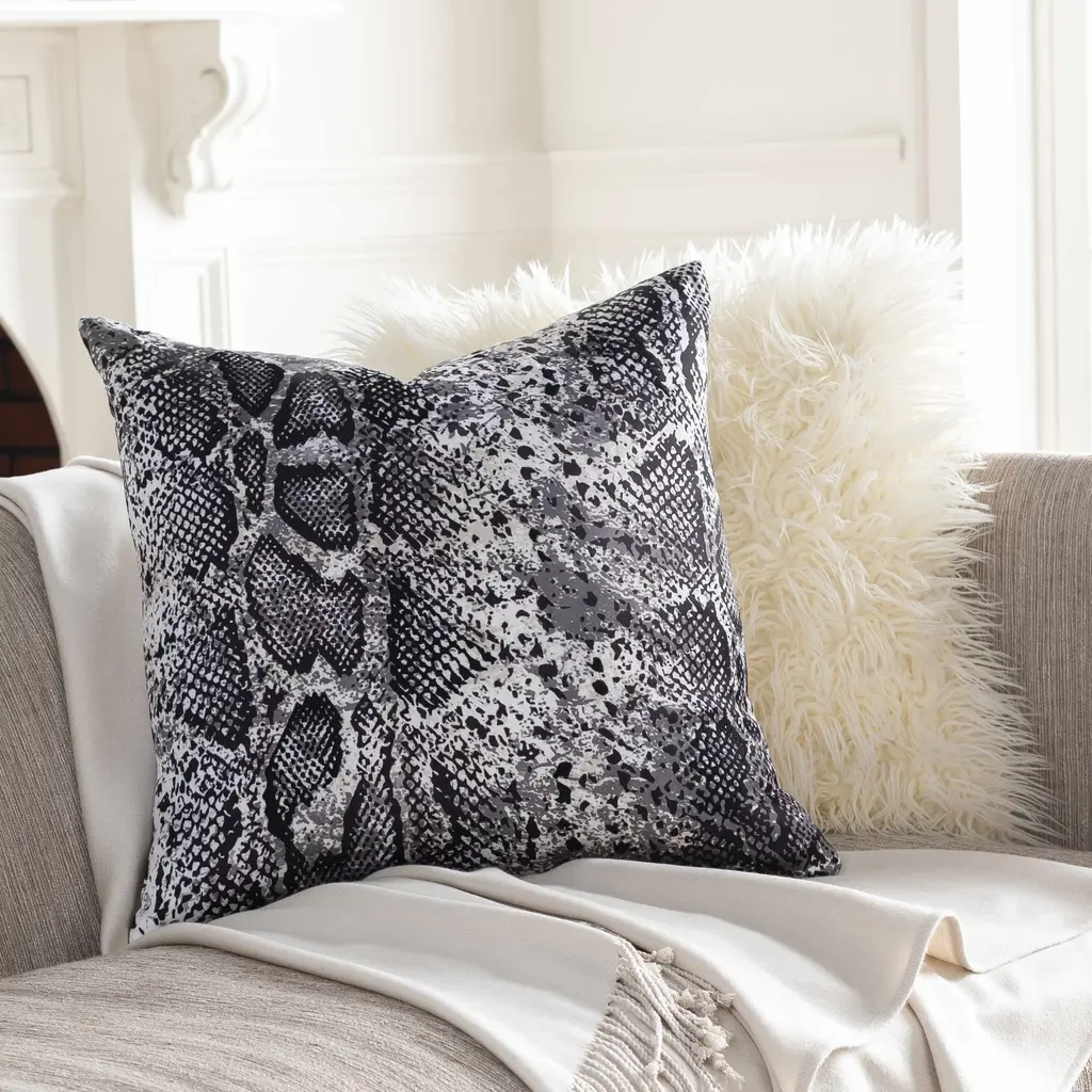 Manticao Charcoal Snake Print Throw Pillow - Clearance - 20"h X 20"w Square Pillow Cover With Down Insert