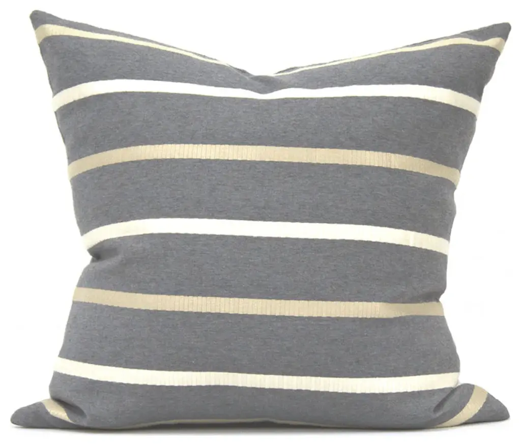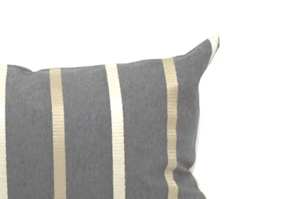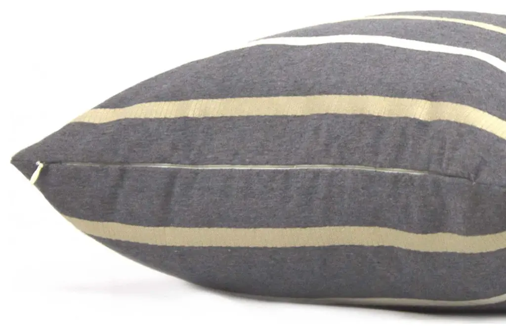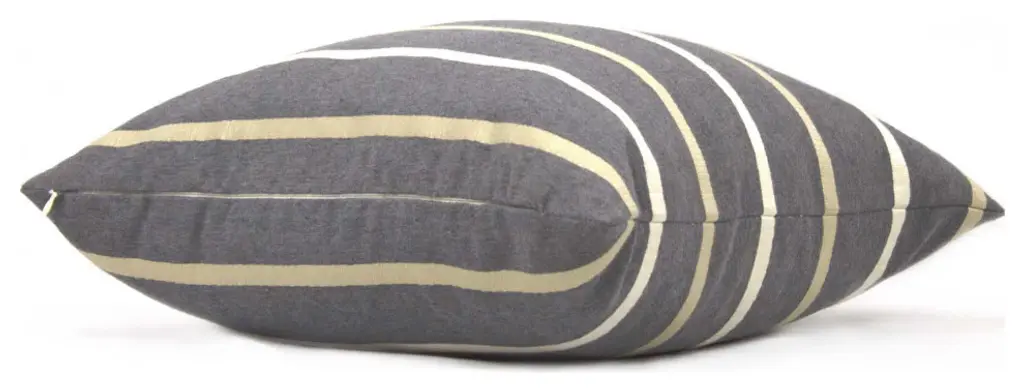 Features:Construction: Knife edgeFabric: Woven Stripe, 40% Pre-Consumer Cotton, 33% Polyester, 27% RayonZipper: Hidden, CreamHand-made in CanadaCare: Dry clean or have professionally washed.Photographs feature the 20" x 20" cushion cover filled with the White Goose Feather Cushion (Firm, 20" x 20").