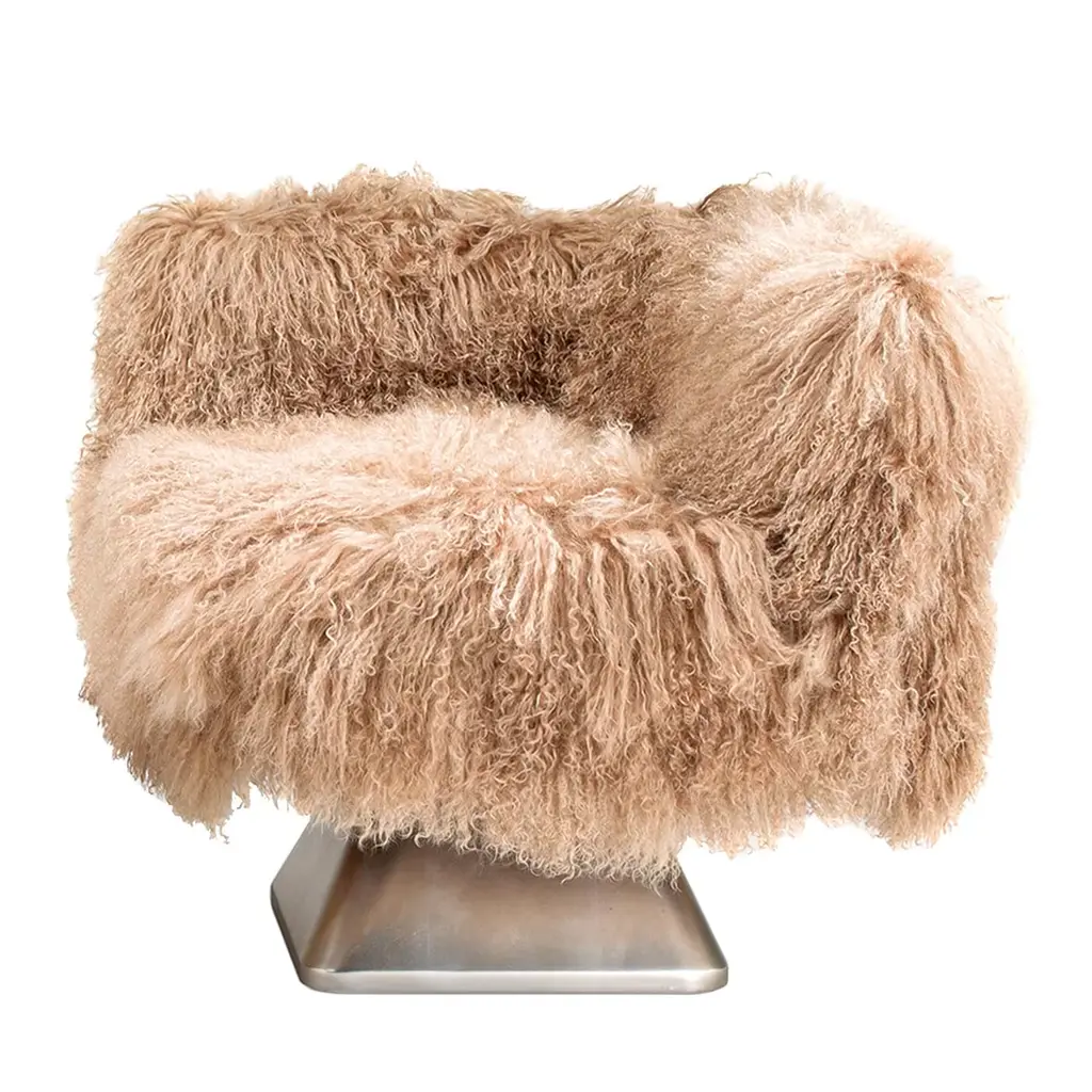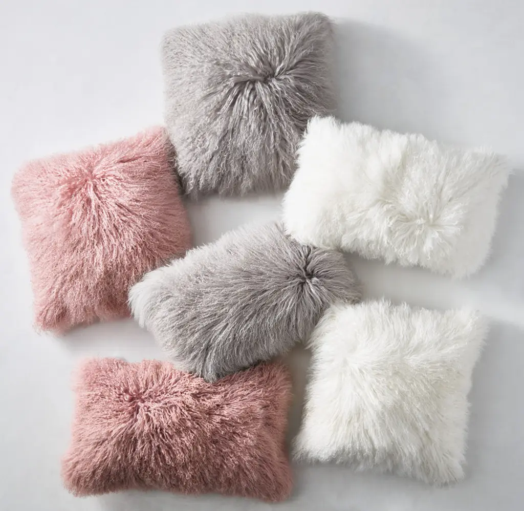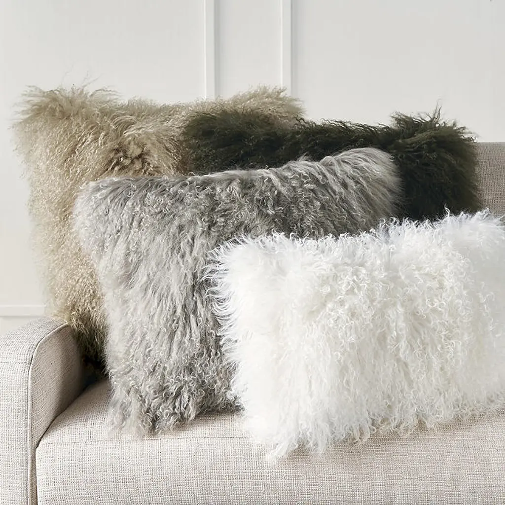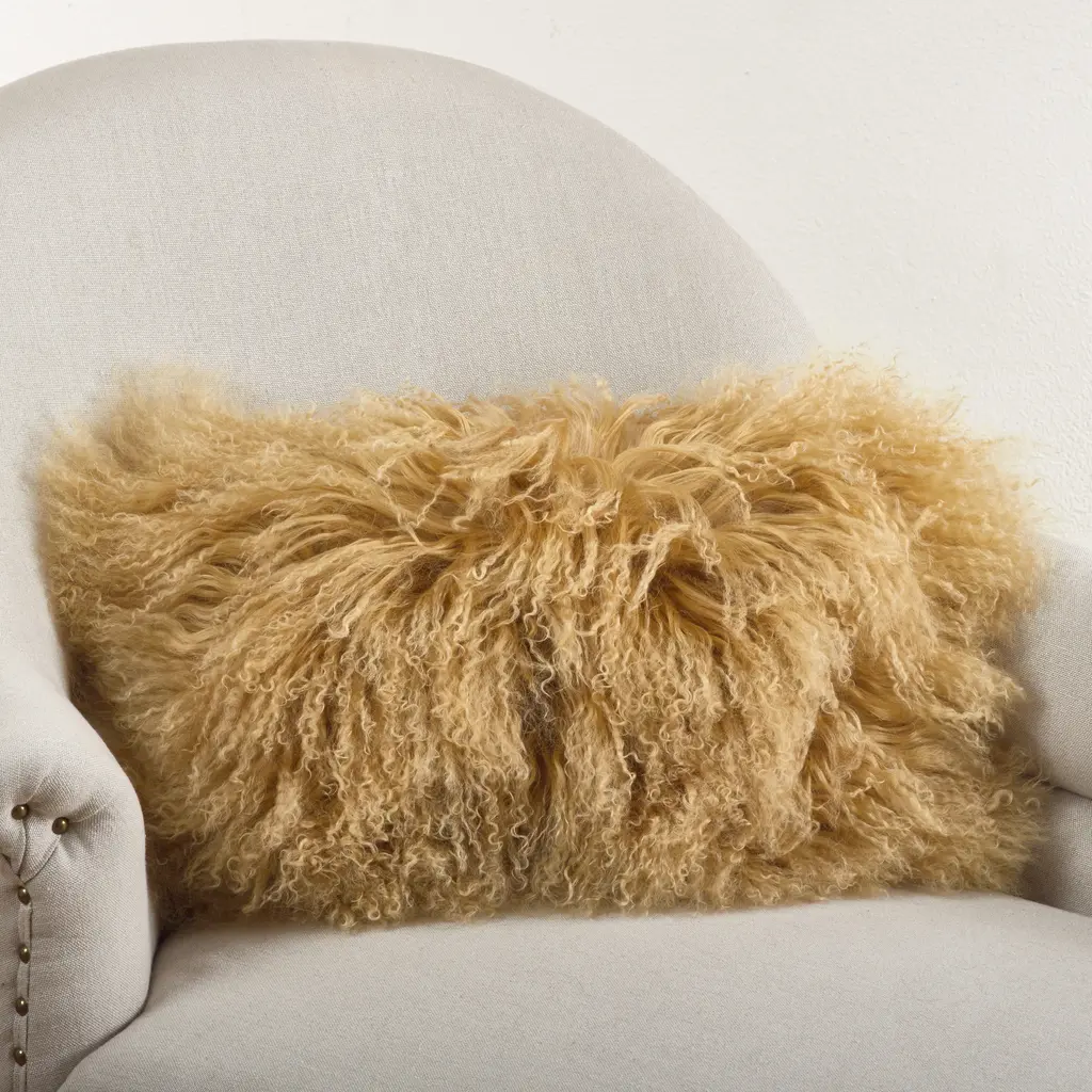 A luxurious touch with a rock-and-roll edge. Mongolian lambs are renowned for their long, curly, silky-textured wool, used here to create a sumptuously soft and decidedly glamorous pillow.