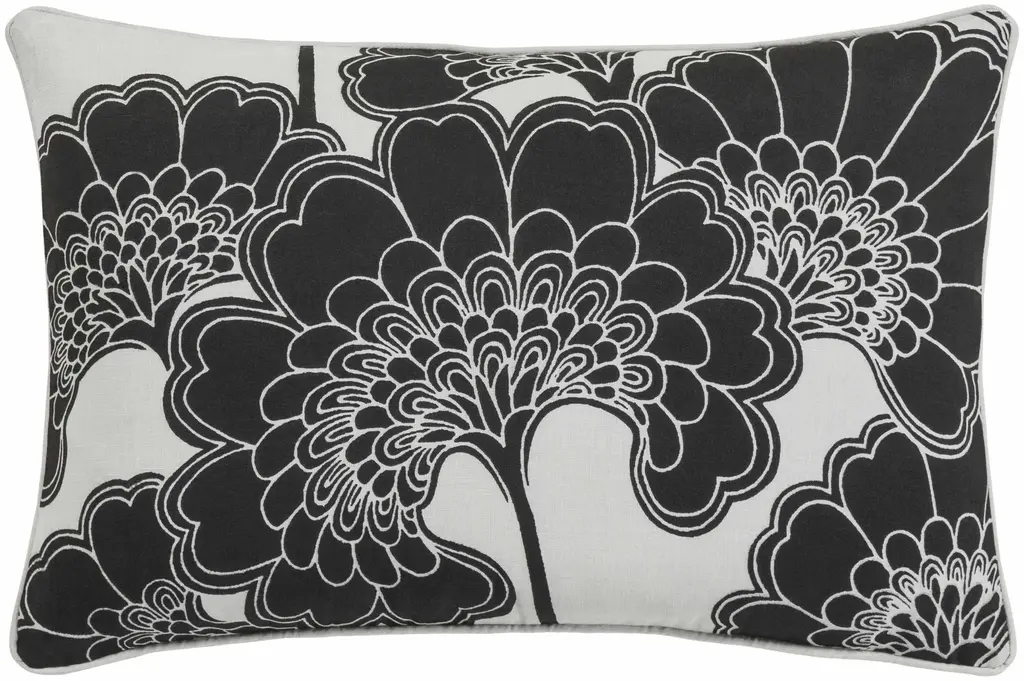 Montmorency Black Floral Elegance Throw Pillow - Clearance - 13" X 20" Lumbar Pillow Cover With Down Insert