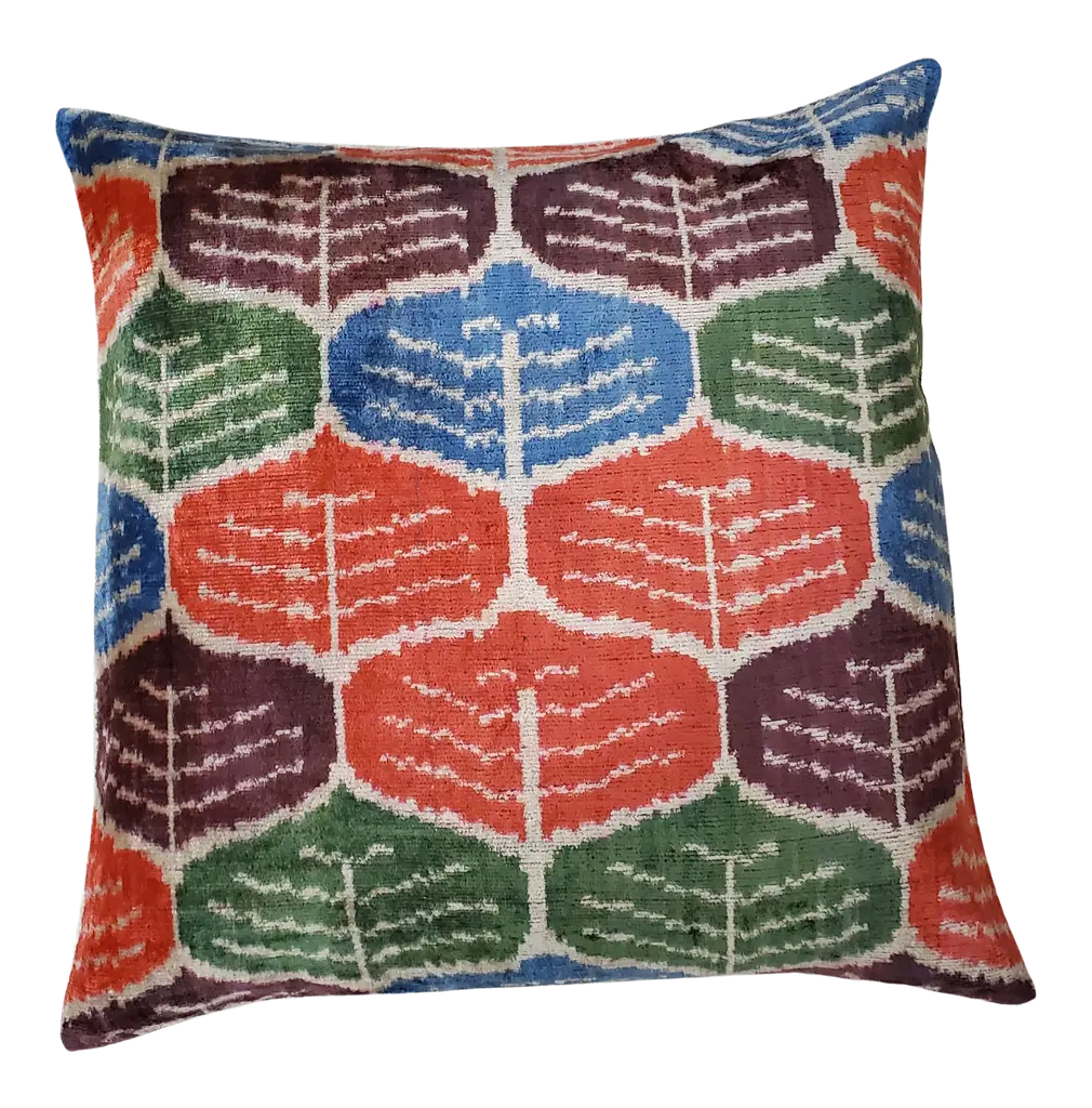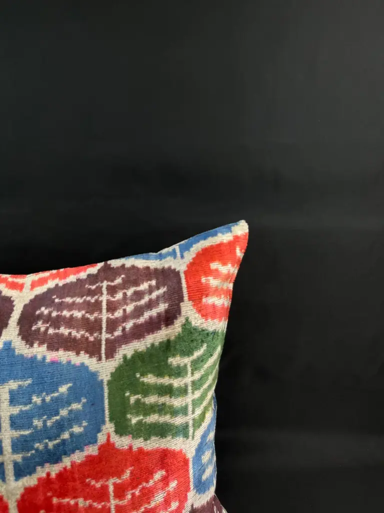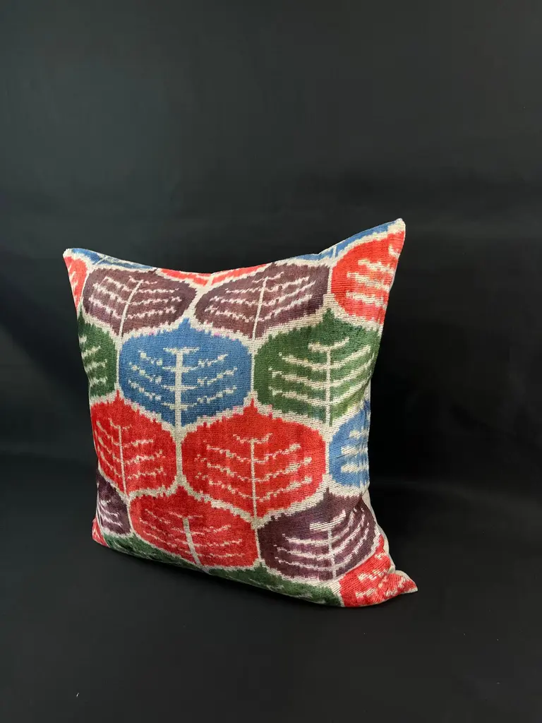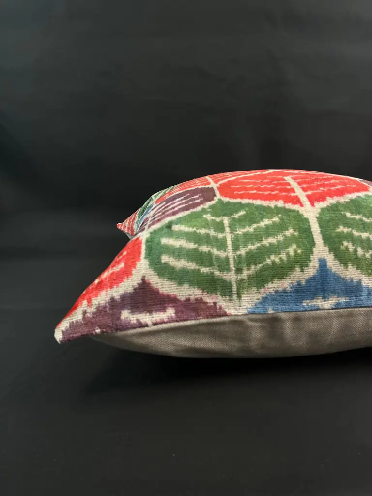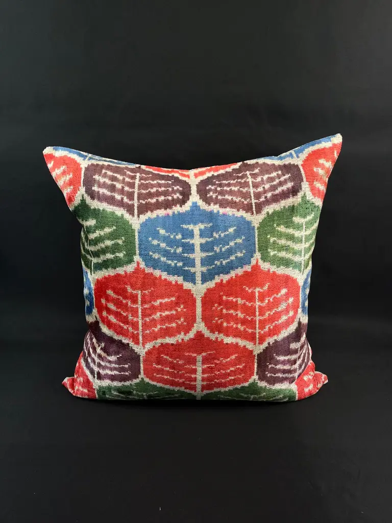 Multicolor Leaf Pattern Velvet Silk Ikat Pillow Cover