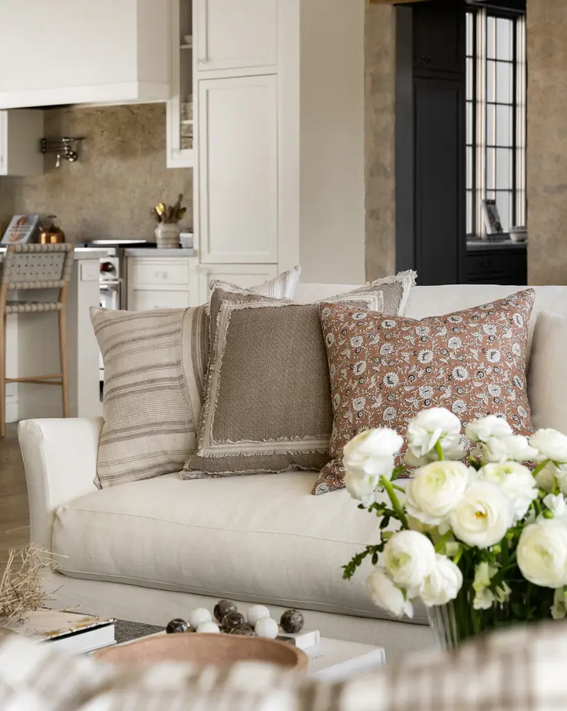 With a warm caramel background and light flowers, the intricate motif of the Nanette Pillow Cover brings subtle beauty to your pillow vignettes. Made from linen, the floral pillow cover is both sophisticated and whimsical.