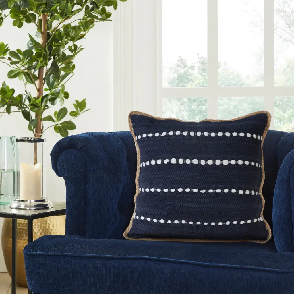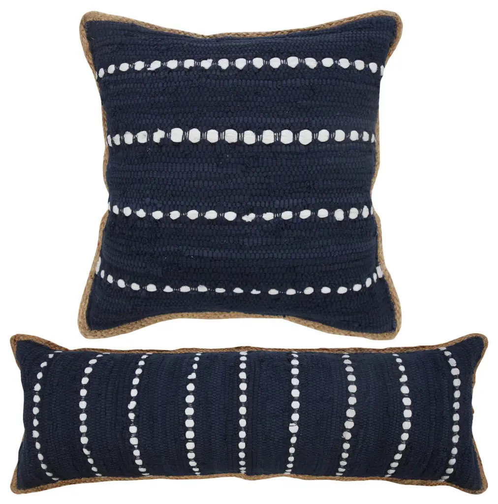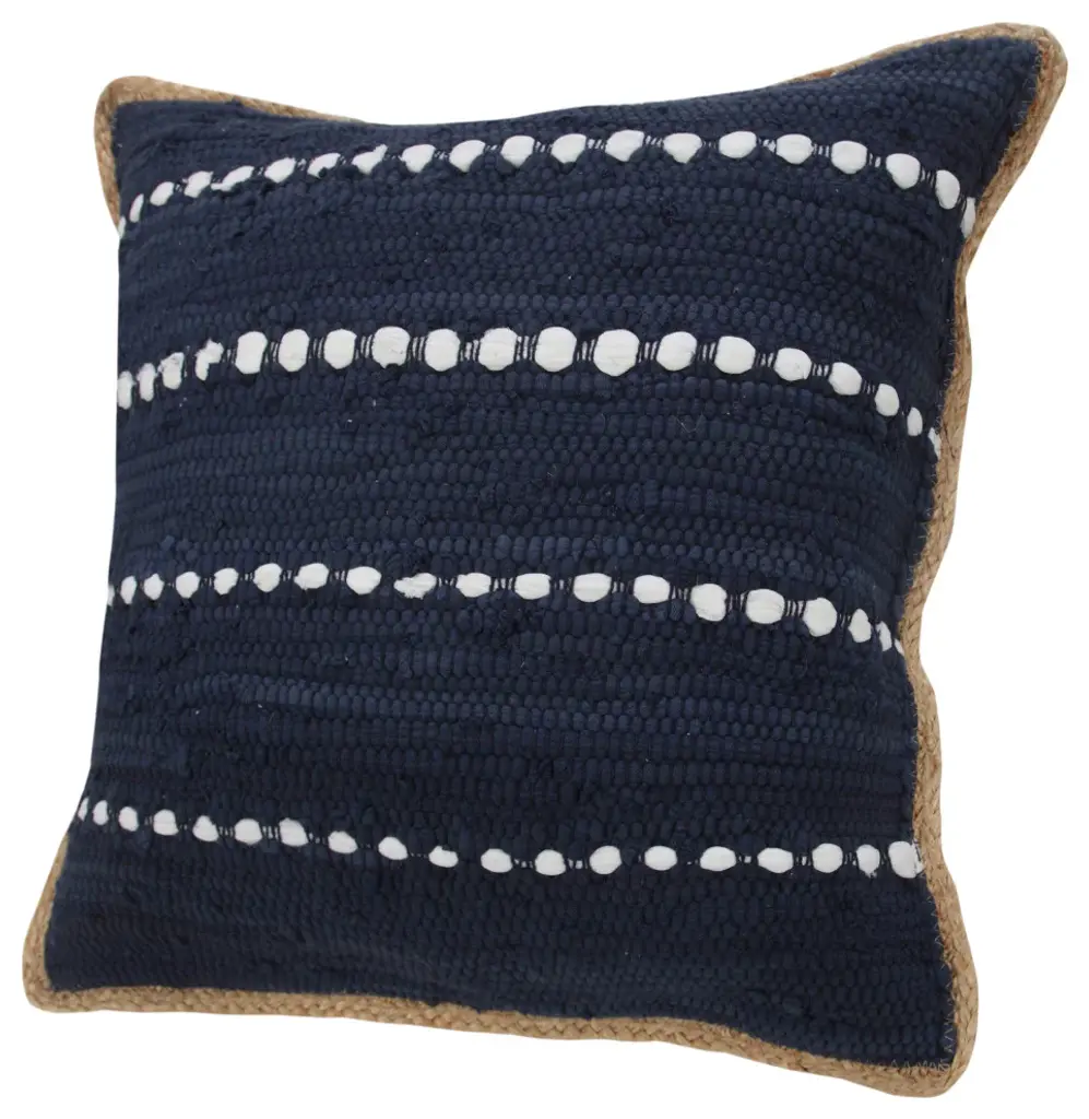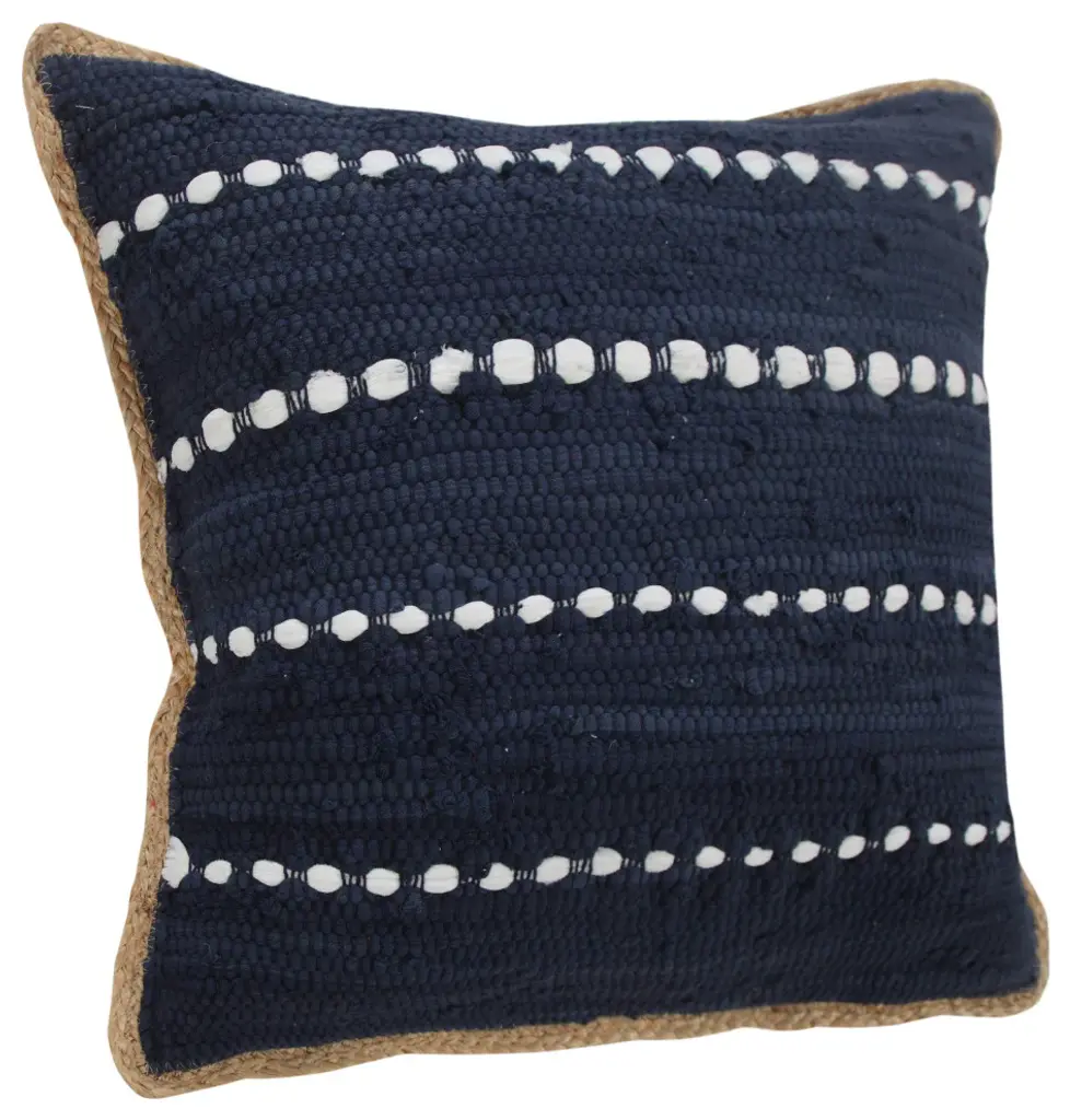 Navy Blue And White Striped Jute Bordered Throw Pillow